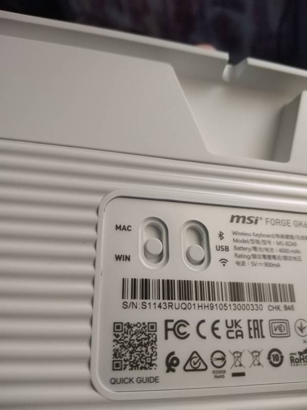 Клавиатура MSI Forge GK600, USB, белый фиолетовый