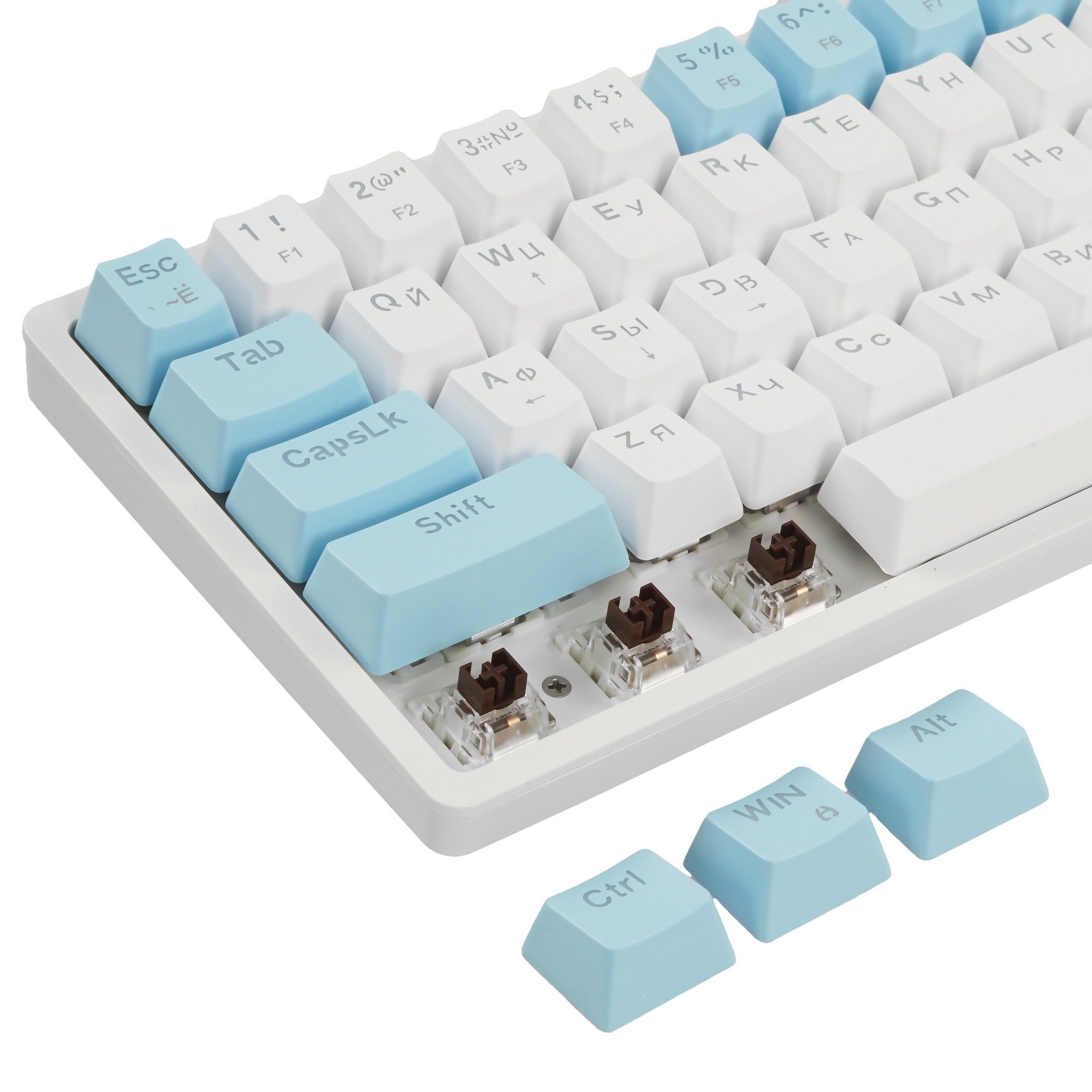 Ультракомпактная механическая клавиатура с кейкапами двух цветов и тактильными коричневыми свитчами. Основные достоинства модели: влагоустойчивая конструкция клавиатуры, регулируемая радужная подсветка и повышенная износостойкость благодаря технологии Double injection.