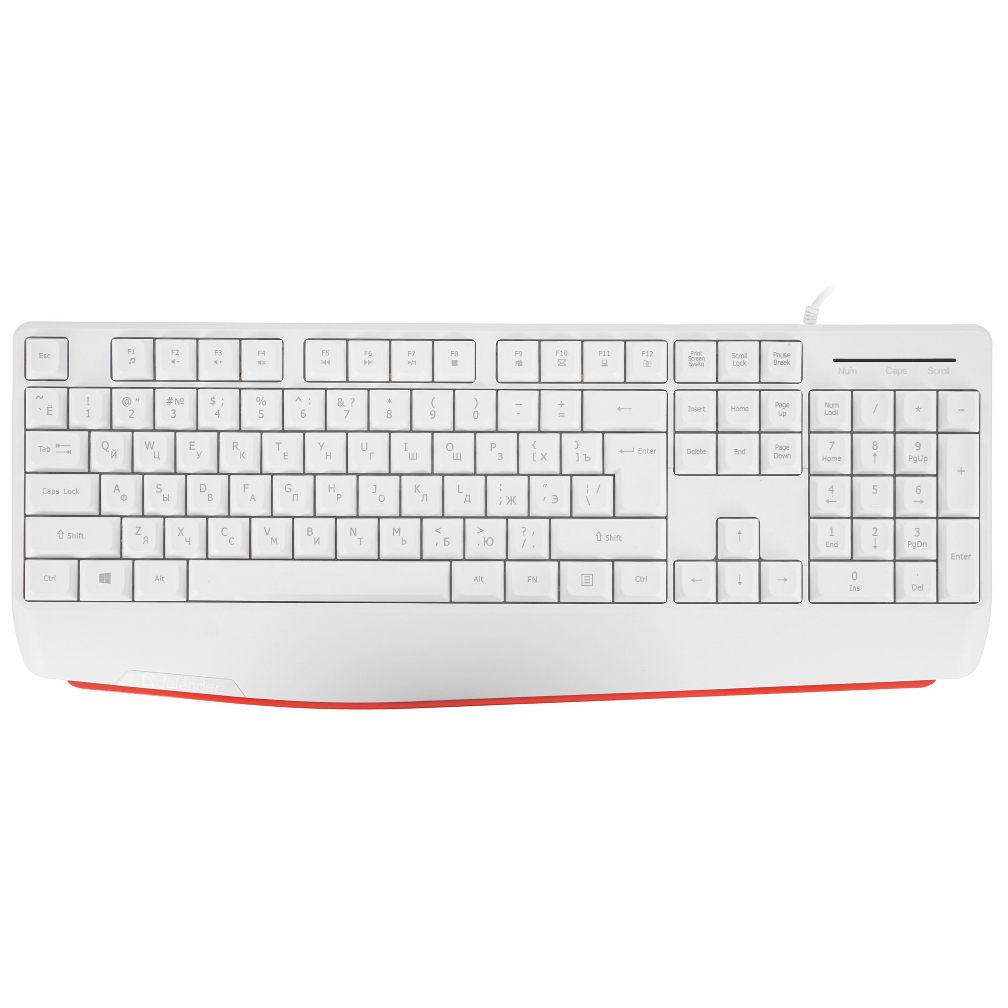 Клавиатура проводная Defender Atom HB-546 [45547] - удобная и стильная проводная офисная клавиатура со встроенной подставкой под запястье. У модели предусмотрены резиновые накладки на ножки для предотвращения скольжения по поверхности стола, классическая раскладка и горячие клавиши для управления мультимедийными программами.