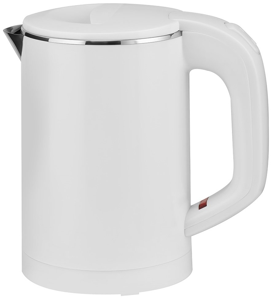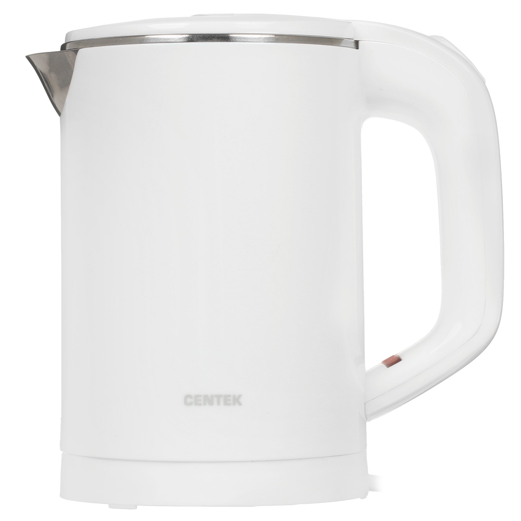 Электрочайник Centek CT-0006 белого цвета выполнен в надежном корпусе из нержавеющей стали и пластика. Это компактный прибор с резервуаром объемом 0.6 л, который устанавливается на независимую базу. В ней спрятан элемент нагрева мощностью 1100 Вт, который за несколько минут доводит воду до кипения. Место для наматывания шнура в основании подставки обеспечивает удобство хранения и транспортировки чайника.