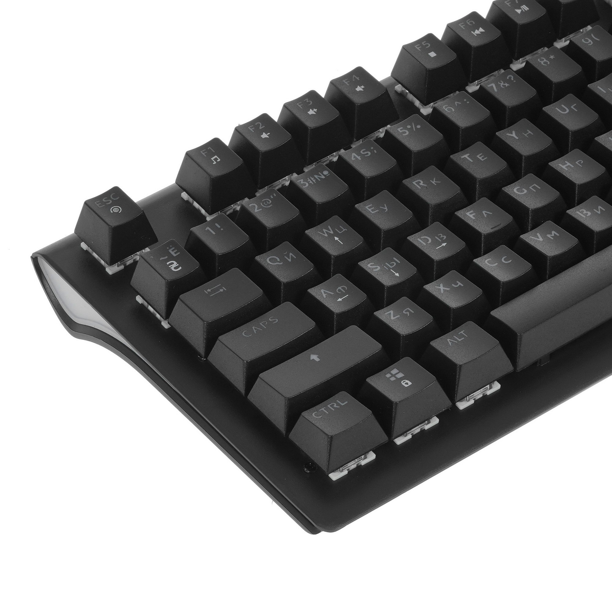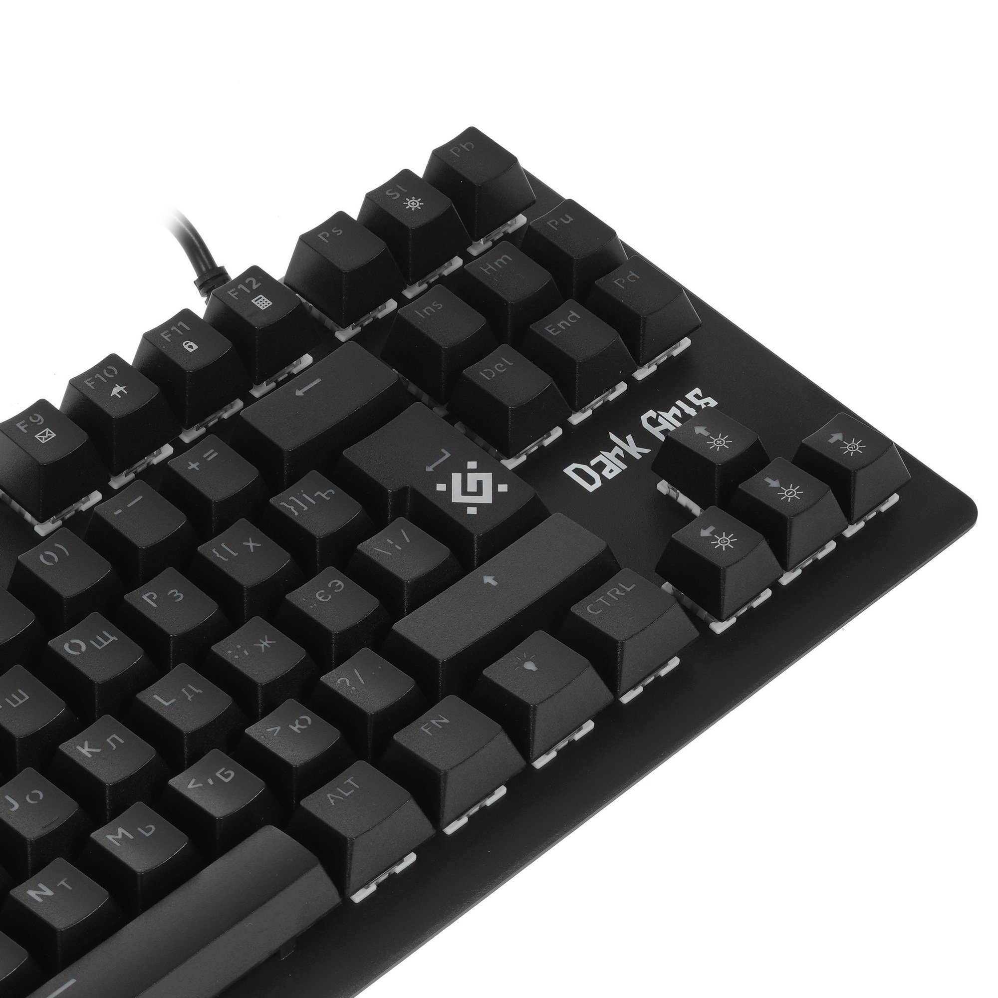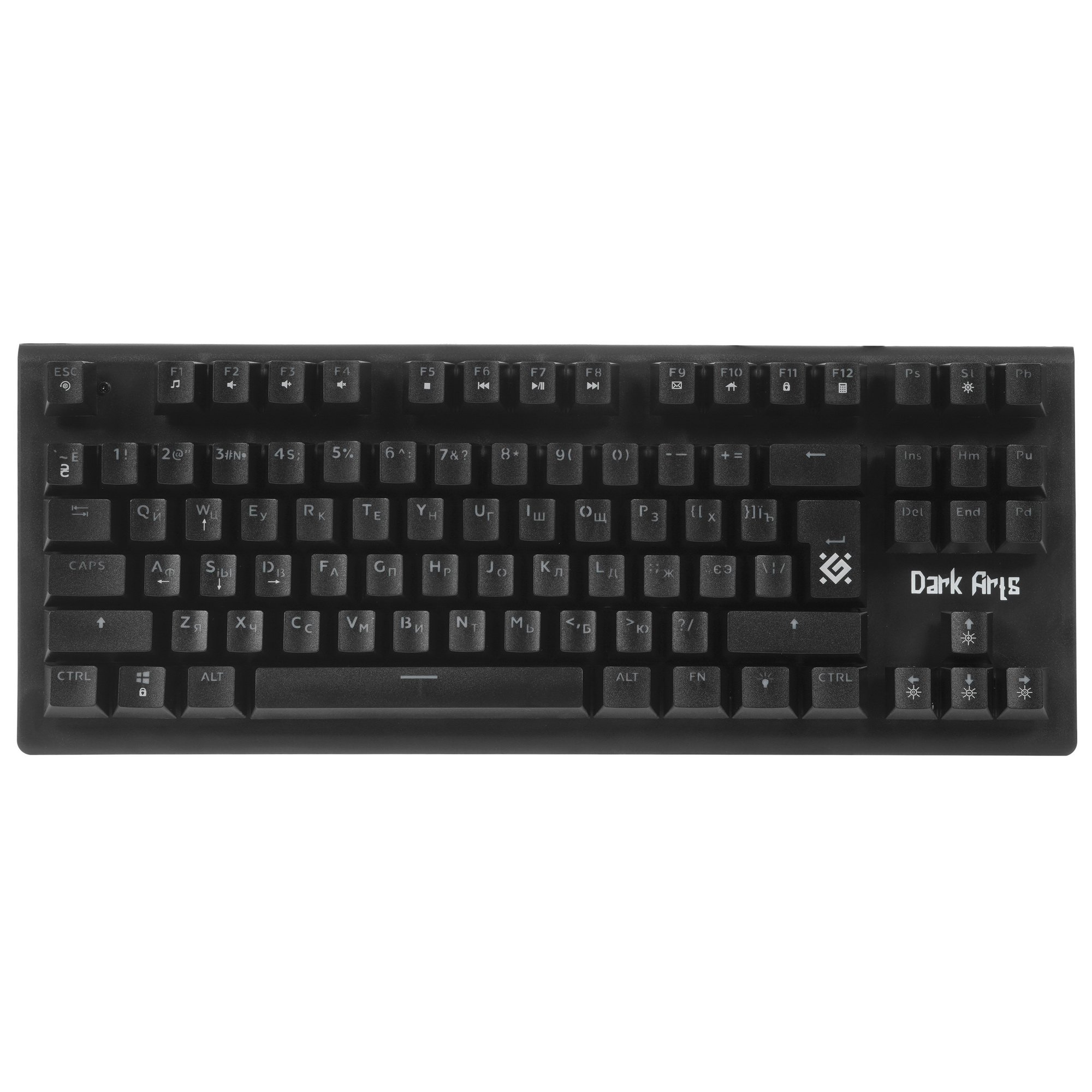 Клавиатура проводная Defender Dark Arts GK-375 [45375] – компактная игровая модель, которая поможет сэкономить место на столе. Дизайн скелетон выполнен в формате 80% (без цифрового блока). Имеется 87 клавиш, среди которых вы найдете ряд Fn и отдельную клавишу для управления подсветкой.