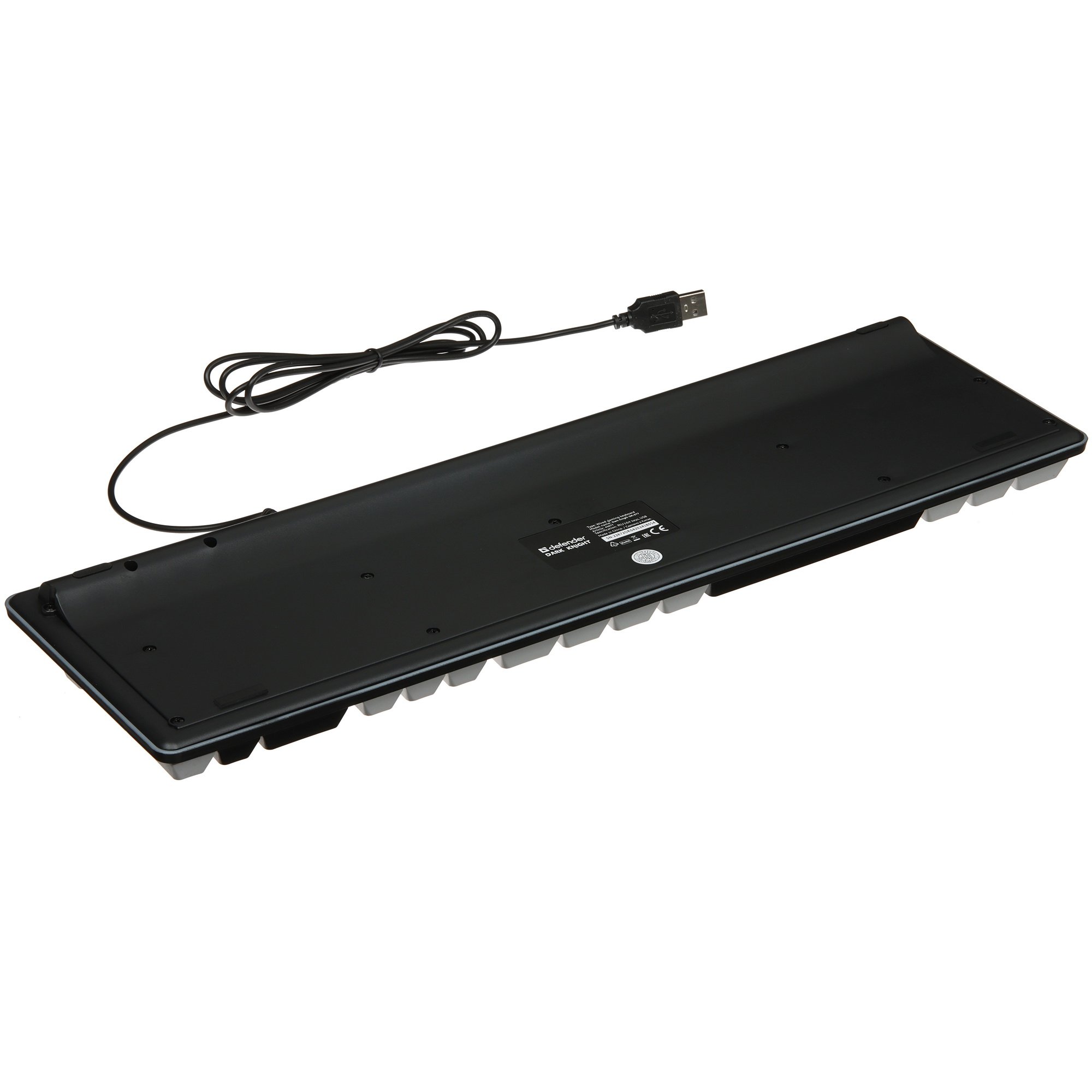 В оснащение клавиатуры проводной Defender Dark Knight GK-077 входят 104 мембранные клавиши, которые отличаются мягким и бесшумным нажатием. Такая модель будет удобна при повседневной работе за компьютером, если она связана с набором текста. Внешний вид устройства украшает многоцветная подсветка по области кейкапа. Используемые в клавиатуре Defender Dark Knight GK-077 переключатели отличаются продолжительным жизненным циклом в 5 млн нажатий. Полноразмерная модель оснащена 1.5-метровым кабелем с интерфейсом USB Type-A для подключения к компьютеру.