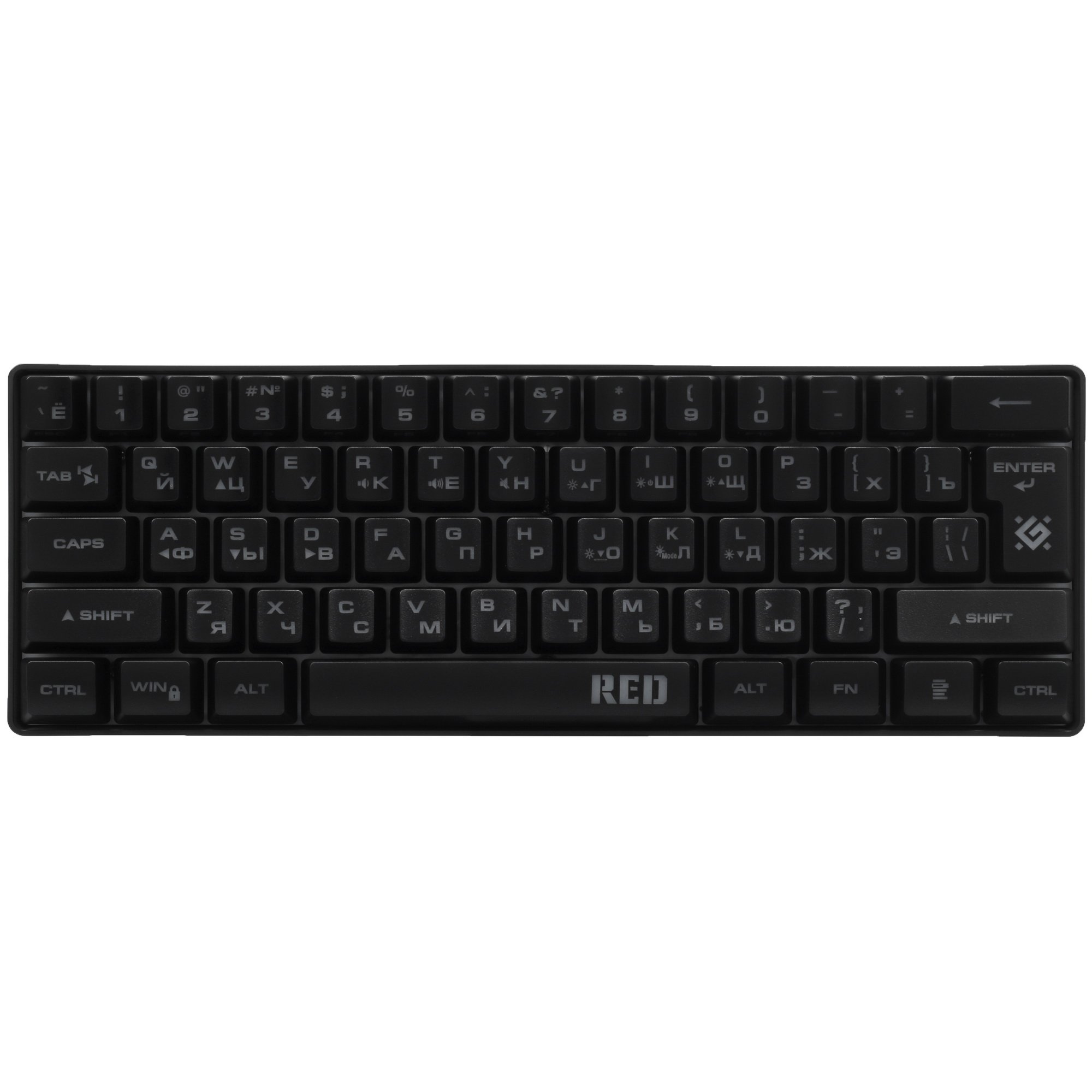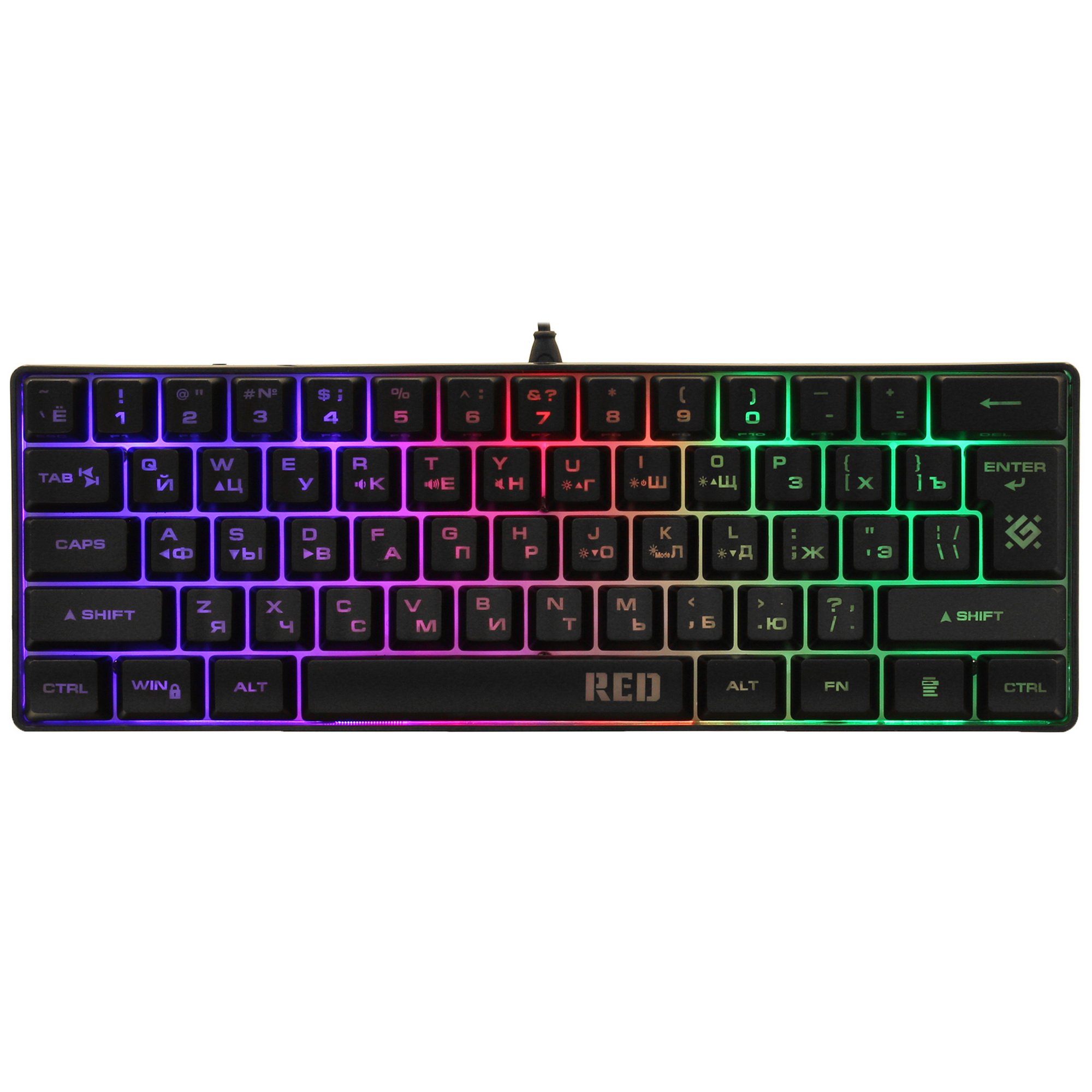 Клавиатура проводная Defender Red GK-116 [45117] выполнена в корпусе компактных размеров. Модель создана с учетом требований геймеров. Она оснащена 61 клавишей с эргономичными кейкапами. Мембранные переключатели обеспечивают четкий отклик и приятный ход с низким уровнем шума. Для комфортной игры в условиях недостаточной освещенности реализована радужная подсветка Rainbow. Defender Red GK-116 предусматривает подключение к компьютеру проводным способом и оборудована отсоединяемым кабелем с разъемом USB.