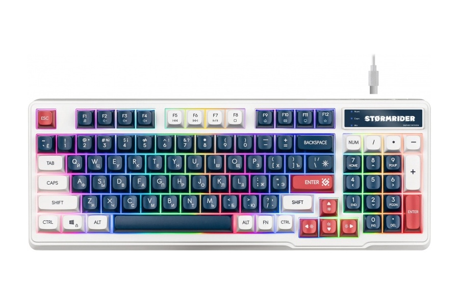 Клавиатура проводная игровая Defender Stormrider GK-425 RU,бел/син,94кн+FN,радуж,1.75м