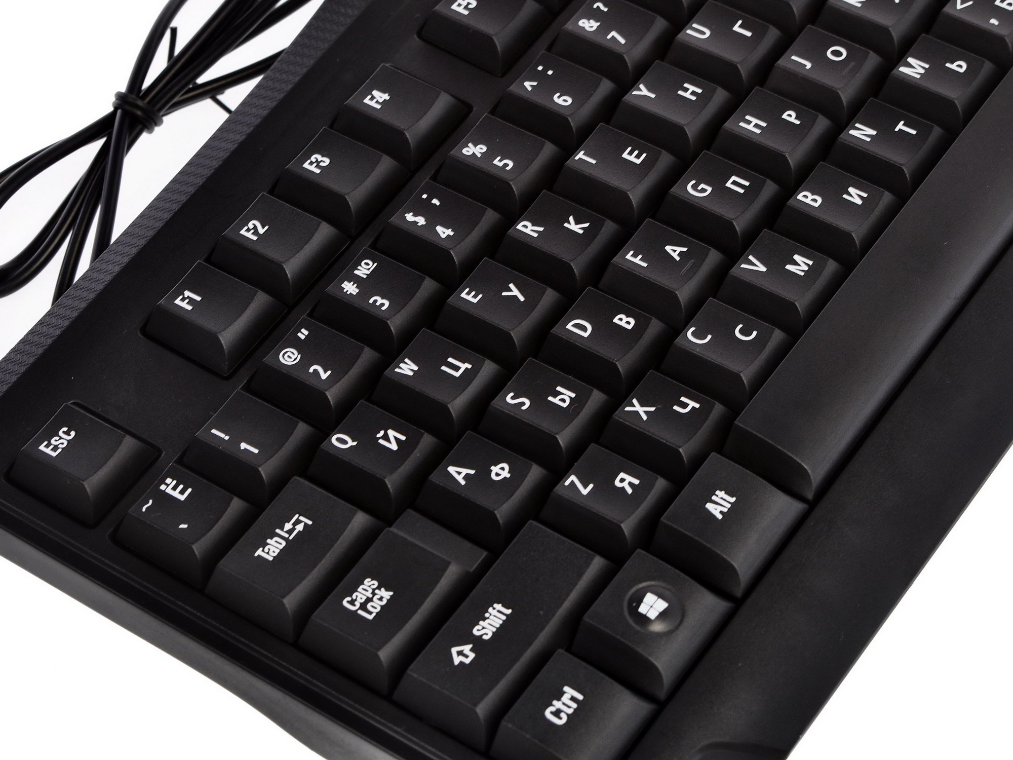 Данная клавиатура также отличается эргономичным расположением клавиш, за счет чего кисти рук не будут больше перенапрягаться. Глаза не устают даже в ходе длительного набора текстов, поскольку каждый символ на устройстве напечатан яркой белой краской, которая не сотрется даже после нескольких лет частого использования.