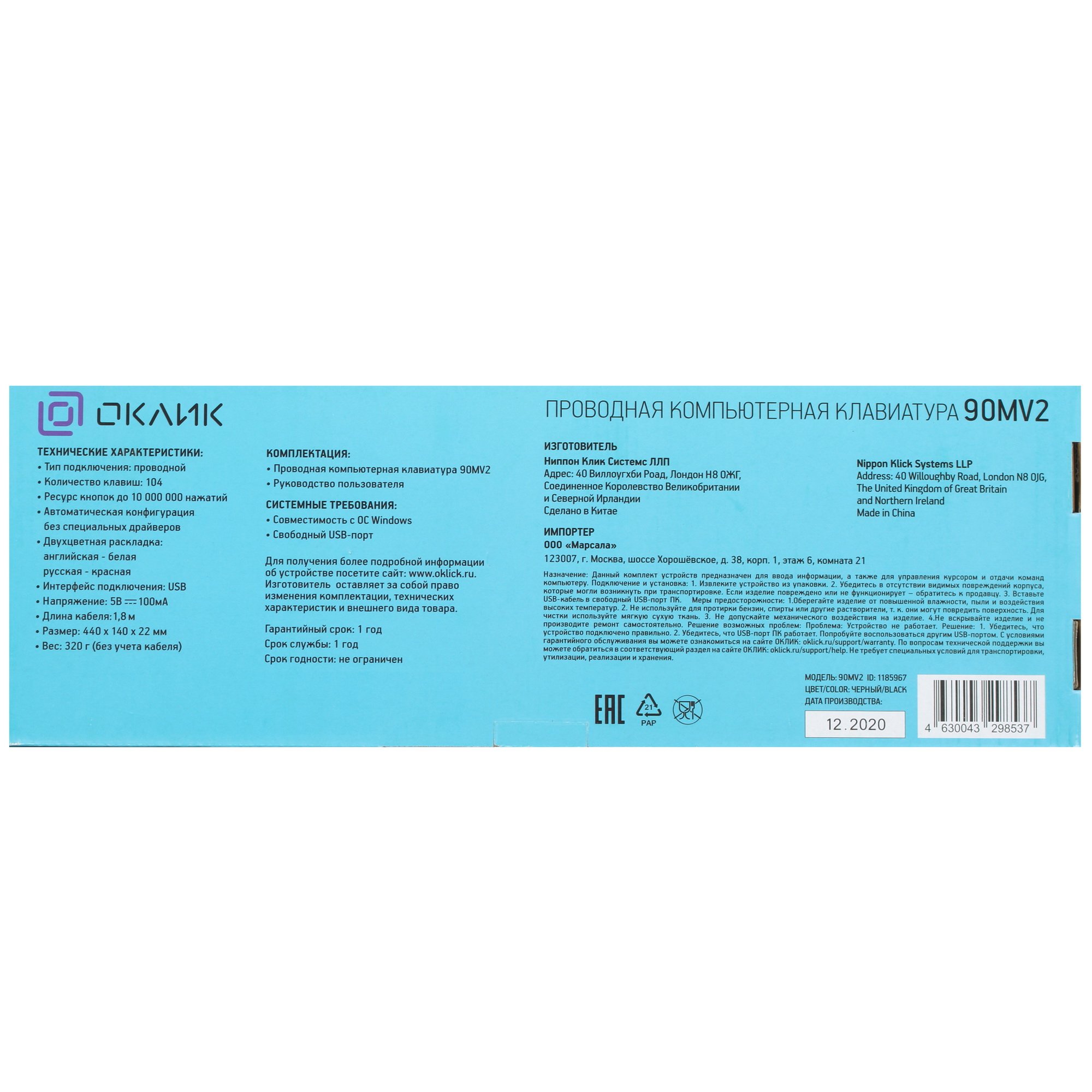 Клавиатура проводная Oklick 90MV2, USB, черный