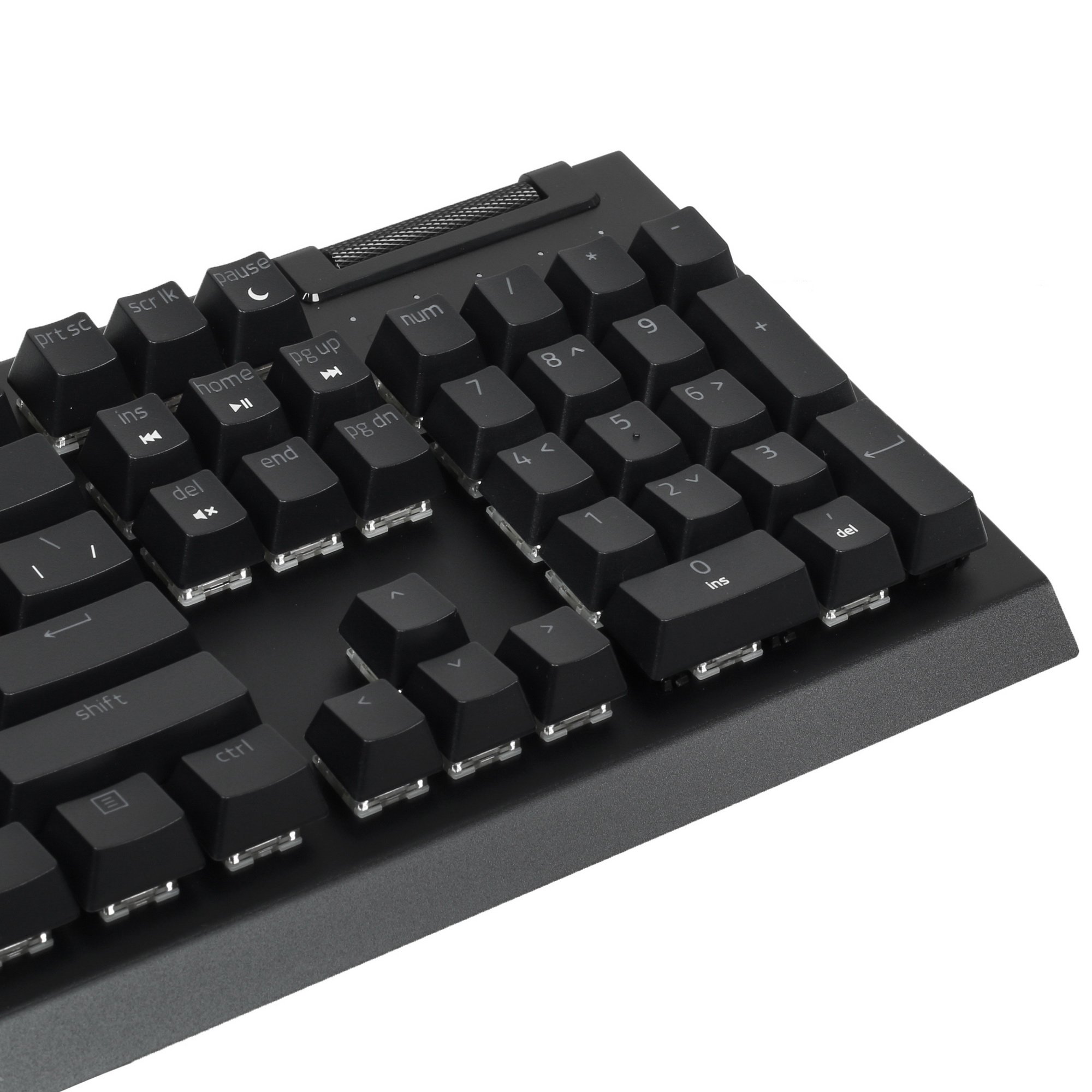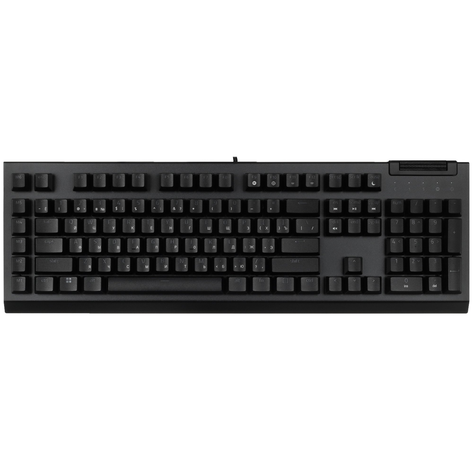 Клавиатура проводная Razer BlackWidow V4 X [RZ03-04700800-R3R1] оборудована цифровым блоком, позволяющим вводить числовые данные. Конфигурацией предусмотрено 6 макро-клавиш, которые программируются под определенные макросы. С колесом прокрутки пользователи могут удобно серфить в интернете и просматривать файлы. Во время синхронизации используется 1.8-метровый USB-кабель.