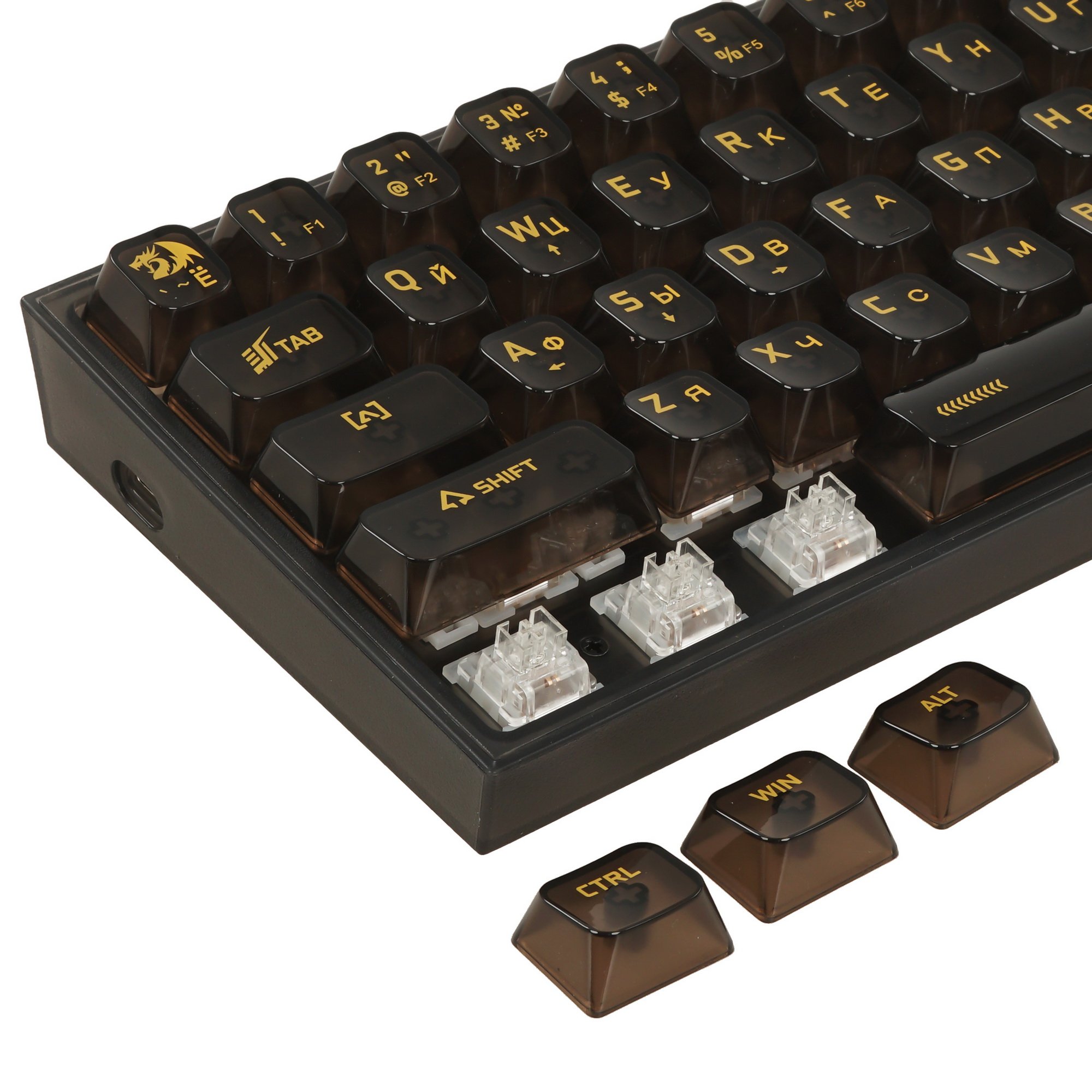 Клавиатура Redragon Fizz – компактное решение для увлекательного, точного и комфортного управления в компьютерных играх. Данная модель выполнена в корпусе с прозрачными кейкапами. Поддержка функции Hot Swap предоставляет возможность быстрой замены переключателей. Механические переключатели Redragon+ICE обеспечивают высокую точность распознавания нажатий с низким уровнем шума. Светодиодная многоцветная подсветка RGB повышает комфорт и погружение в игровой процесс. Redragon Fizz выполнена в прочном пластиковом корпусе и подключается к ПК посредством кабеля USB.