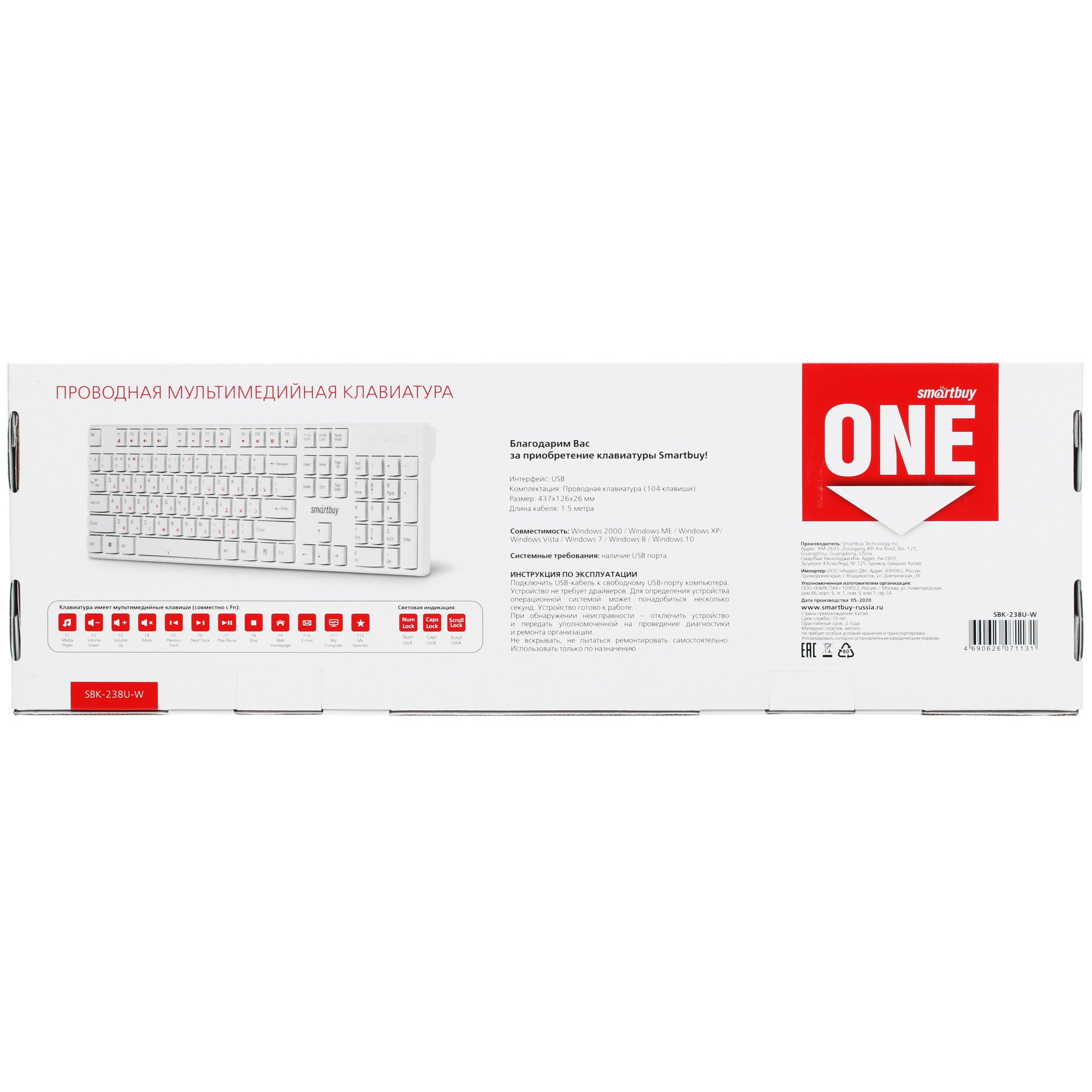 Клавиатура проводная мультимедийная Smartbuy ONE 238 USB белая (SBK-238U-W)/20