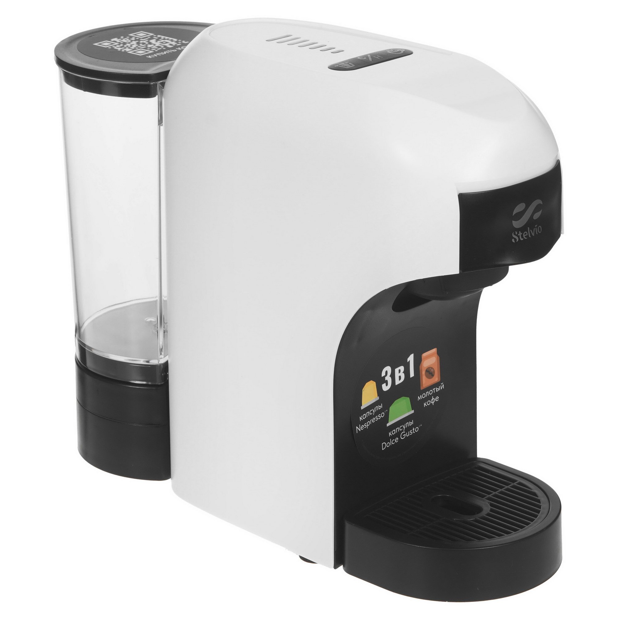 Кофемашина капсульная Stelvio XC300 W готовит кофе с молоком, эспрессо, лунго, американо, латте, капучино, горячий шоколад, айс-кофе. Модель оснащена тремя сменными адаптерами для капсул формата Nespresso и Dolce Gusto, молотого кофе. Благодаря помпе с давлением 20 Бар достигается максимальная экстракция, раскрываются вкус и аромат, напитки получаются с плотной кремовой пенкой.