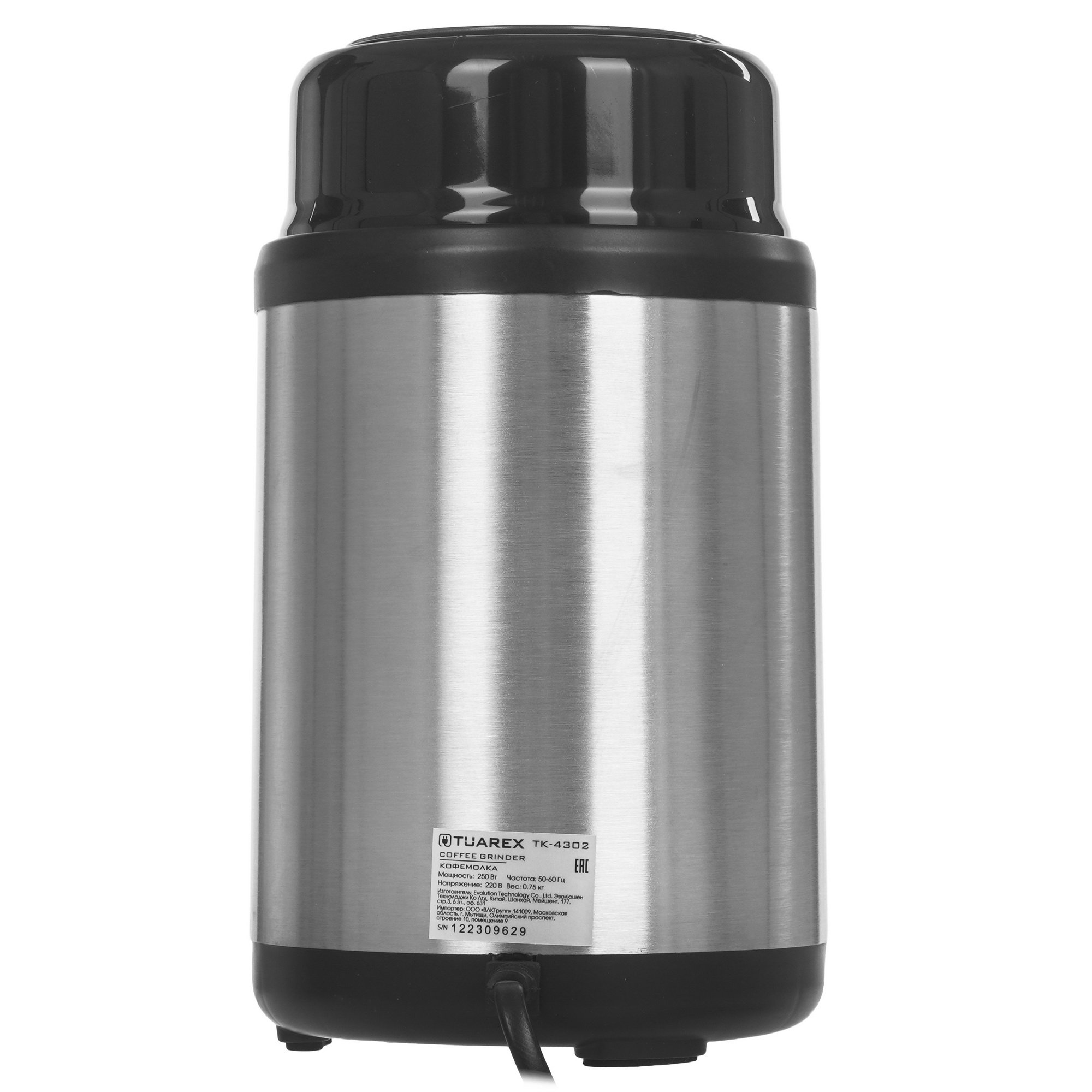 Кофемолка TUAREX TK-4302 в стильном корпусе из нержавеющей стали – это идеальный инструмент для создания идеального кофейного напитка. Мощность 250 Вт и скорость вращения до 26 000 об/мин обеспечивают равномерный и качественный помол зерен всего за несколько секунд. Вес продукта для помола достигает 100 граммов, что позволяет приготовить достаточное количество молотого кофе для всей семьи или компании друзей.