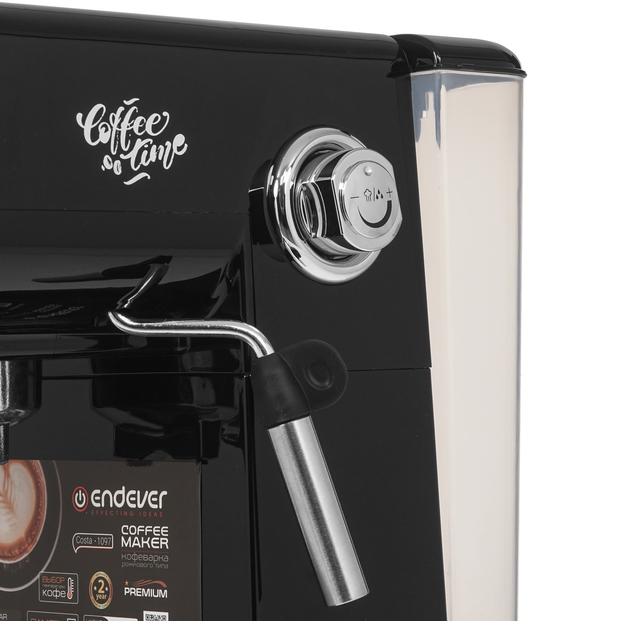 Кофеварка рожковая Endever Costa-1097 мощностью 1000 Вт позволяет регулировать температуру напитка и порцию воды. Выбор настроек производится с помощью кнопочной панели. Ручной капучинатор служит для взбивания молока в пену. Рожок выполнен из пластика и металла. Подобное сочетание материалов не воздействует на вкусовые характеристики молотых зерен.