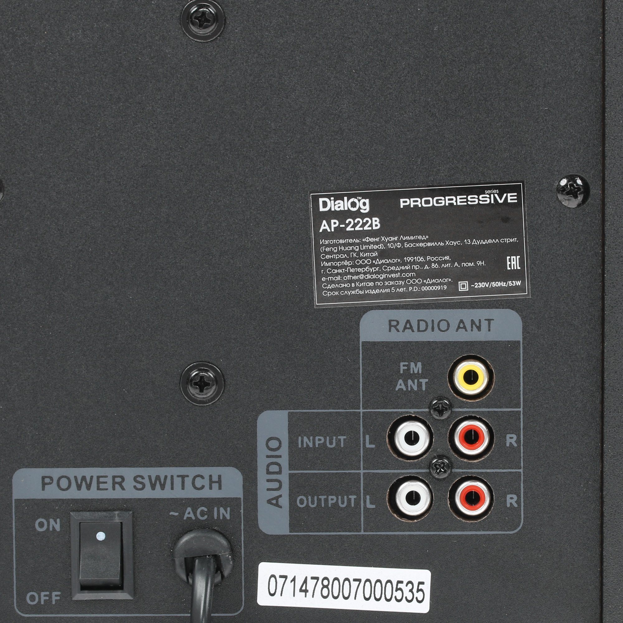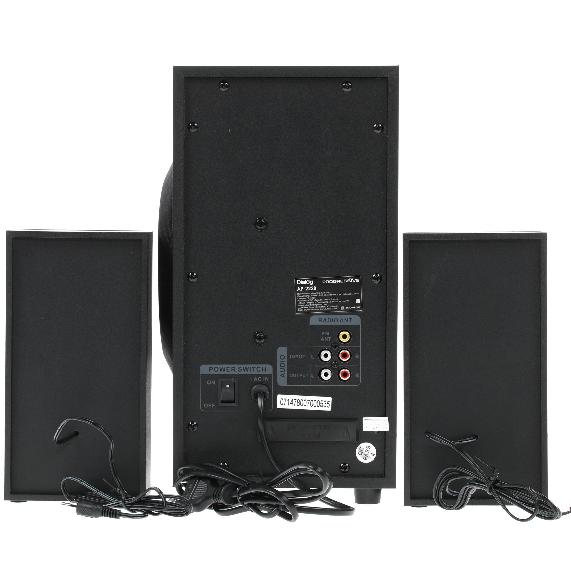 Комплект Dialog AP-222B состоит из двух колонок, выполненных из MDF, мощность каждой из них составляет 10 Вт. Также в комплект включен активный сабвуфер мощностью 30 Вт, который обогатит воспроизведение насыщенными басами. Предусмотрено магнитное экранирование динамиков. Для работы устройства нужно подключить к стандартной сети 220 В. Воспроизведение возможно как с внешних носителей (USB, SD), так и через Bluetooth.