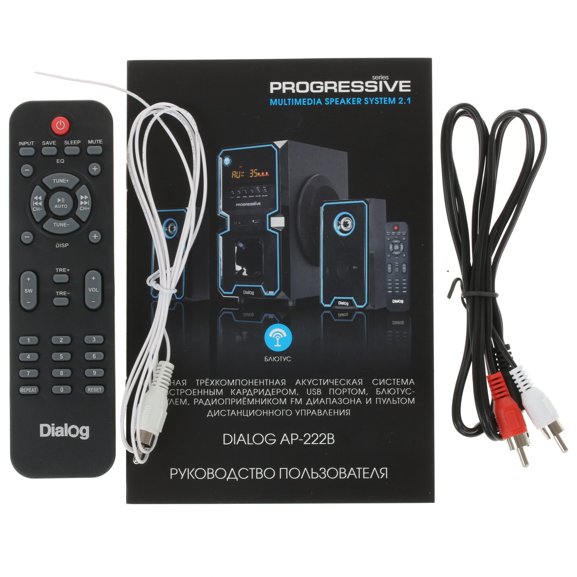 Акустическая система Dialog Progressive AP-222B BLACK - акустические колонки 2.1, 30W+2*10W RMS, Bluetooth, USB/SD reader