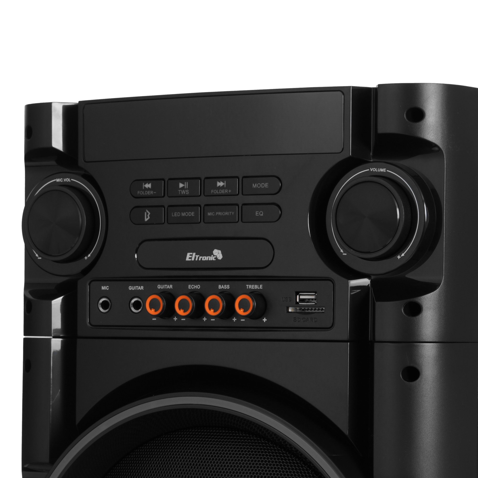 Eltronic 30-52 CRAZY BOX - стационарные колонки, состоящие из активной и пассивной и обладающие суммарной мощностью RMS 200 Вт, способны создать праздничную атмосферу у вас дома или на даче. В комплекте прилагается беспроводной микрофон для любителей прокачать свои легкие.