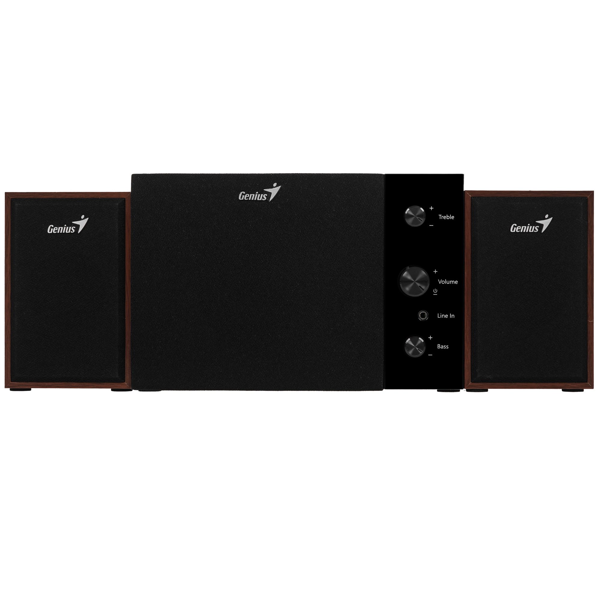 Колонки Genius SW-2.1 350 оборудованы активным сабвуфером с усилителем низкой частоты. Конфигурацией предусмотрено 3 стереодинамика общей мощностью 15 Вт. Корпус из МДФ коричневого цвета наполняет звучание высокой плотностью и слабым резонансом.