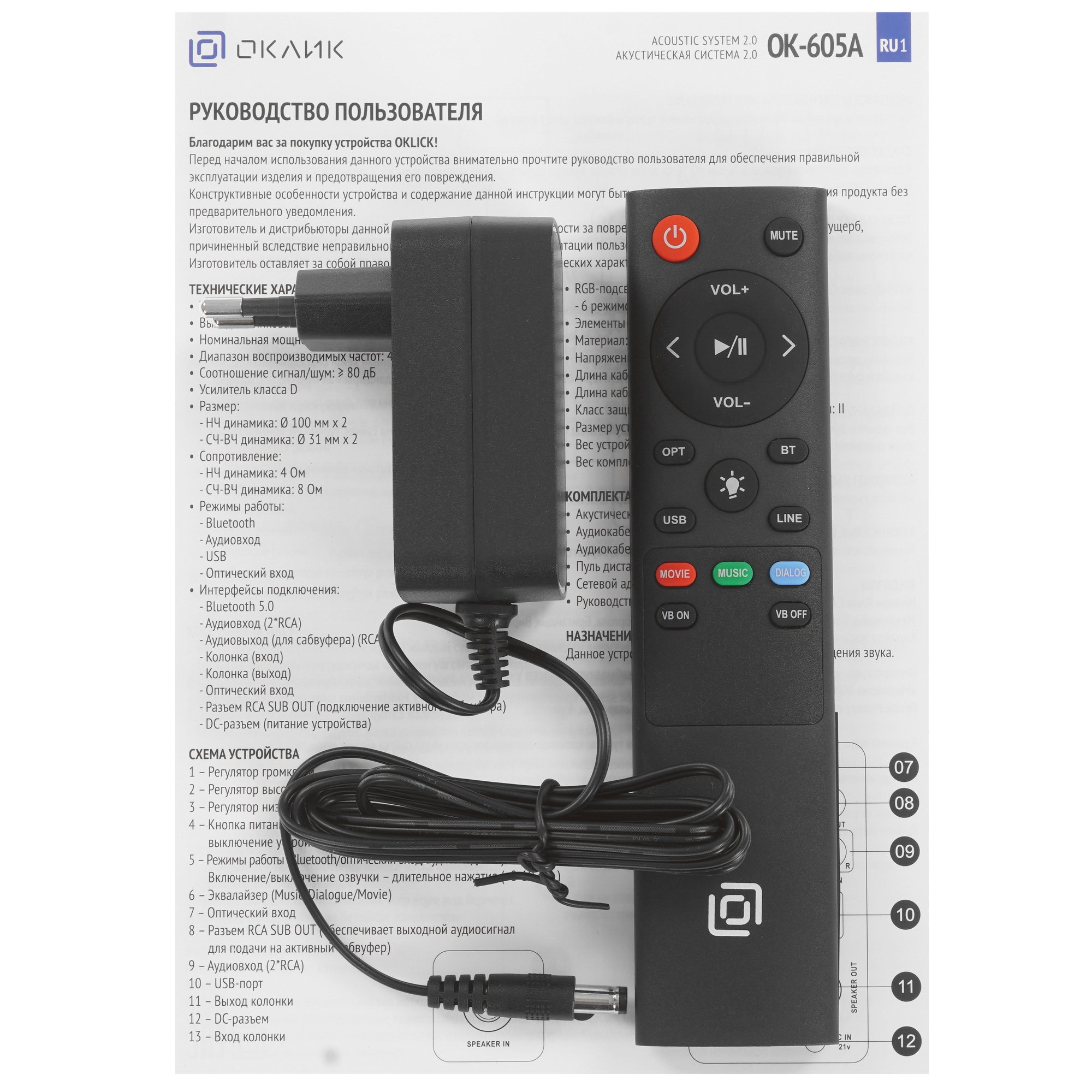 Колонки Oklick OK-605A черного цвета представляет собой систему формата 2.0. Они управляются с помощью регулятора на задней панели или пульта ДУ. Модель имеет стереозвучание и четыре динамика общей мощностью 60 Вт. Подключение осуществляется через Bluetooth или разъем RCA.