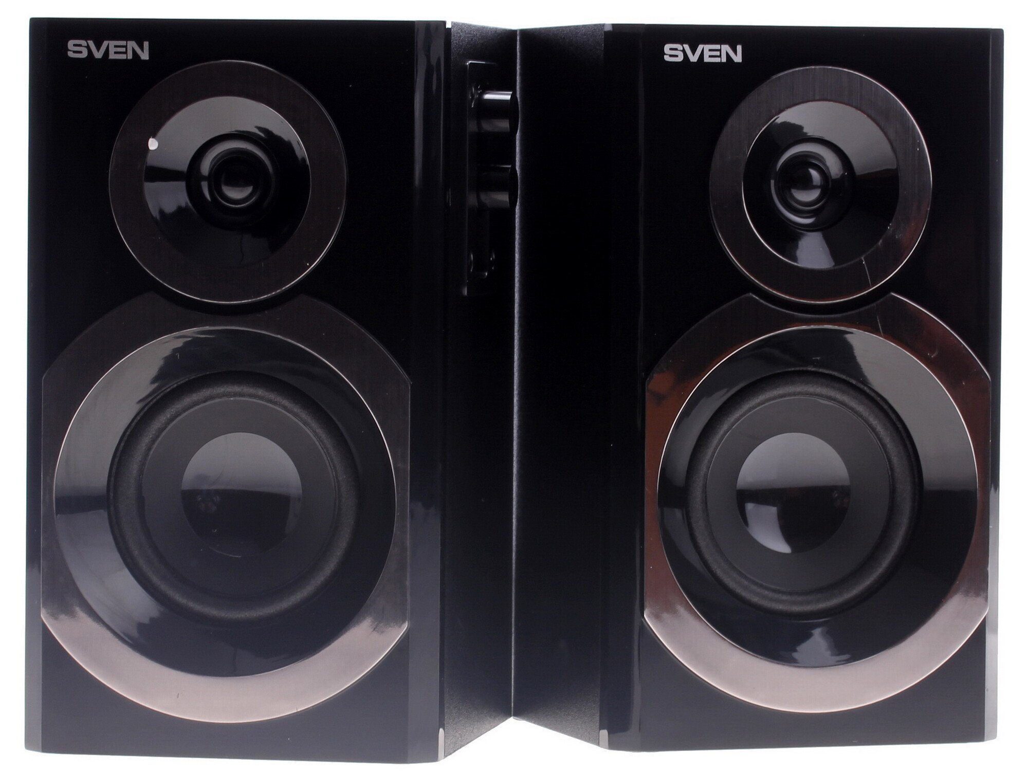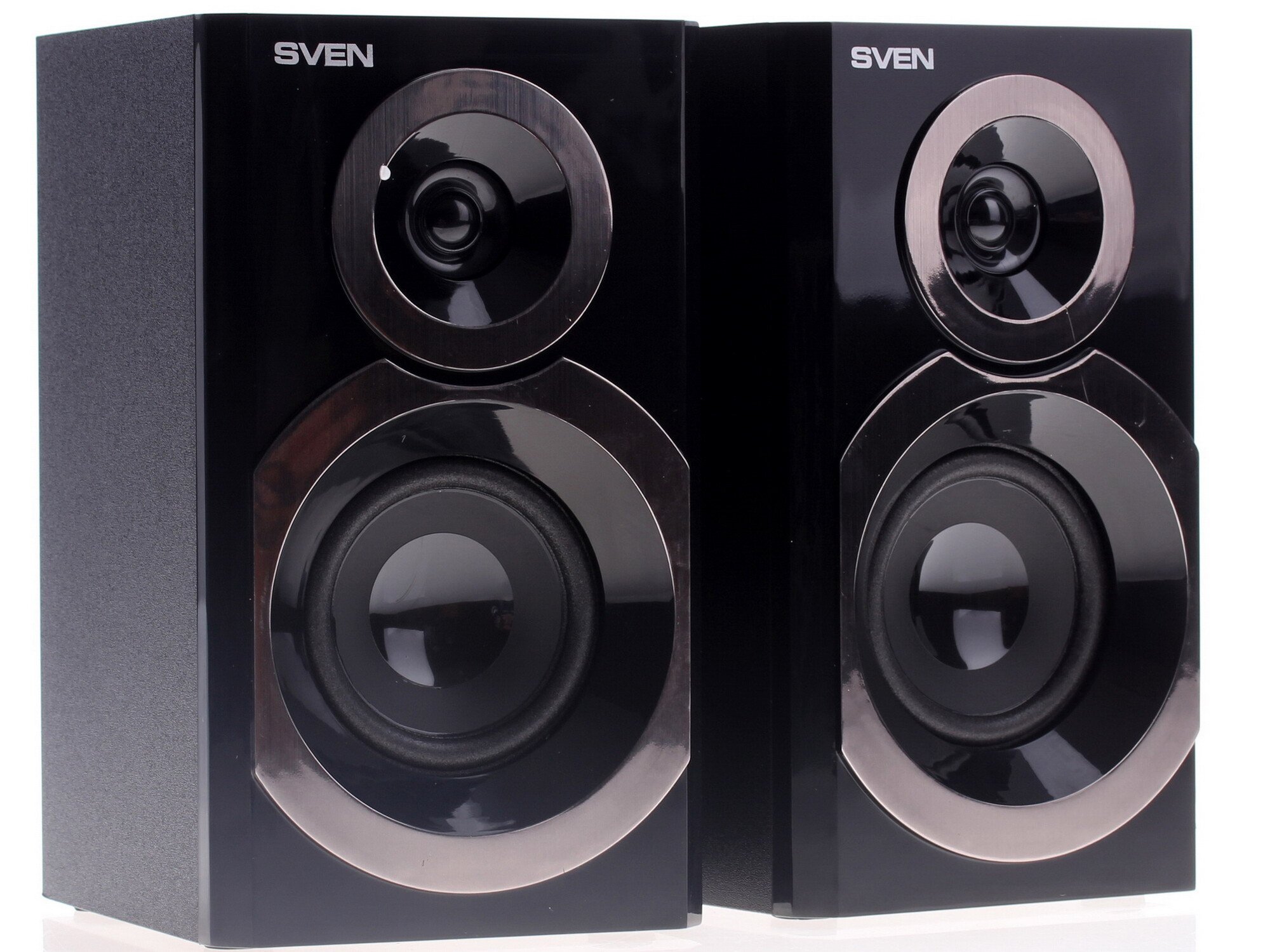 Колонки SVEN SPS-619 – это среднеразмерная акустика формата 2.0 с ярким дизайном. Колонки имеют черный деревянный (MDF) корпус с глянцевой передней панелью и оформленные под алюминий круглые отверстия динамиков. Помимо интересного дизайна, акустика имеет мягкий чистый звук.