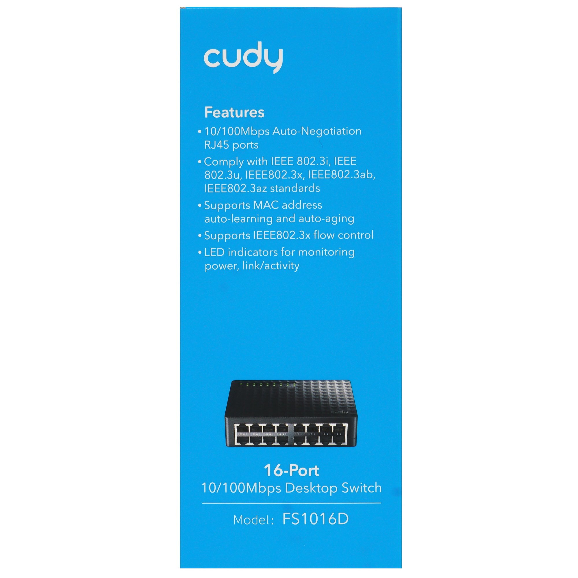 Cudy FS1016D - это многопортовый коммутатор, поддерживающий сеть до 100 Мбит/с. Он подключает до 16 устройств со скоростью до 100 Мбит/с и обеспечивает вам использование производительной, бесшовной сети 100 Мбит/с, идеальной для мультимедиа, графики, HD-видео и других приложений, требующих большого объема передачи данных. Коммутатор легко использовать: он не требует специальной настройки и работает по принципу “подключи и работай”.