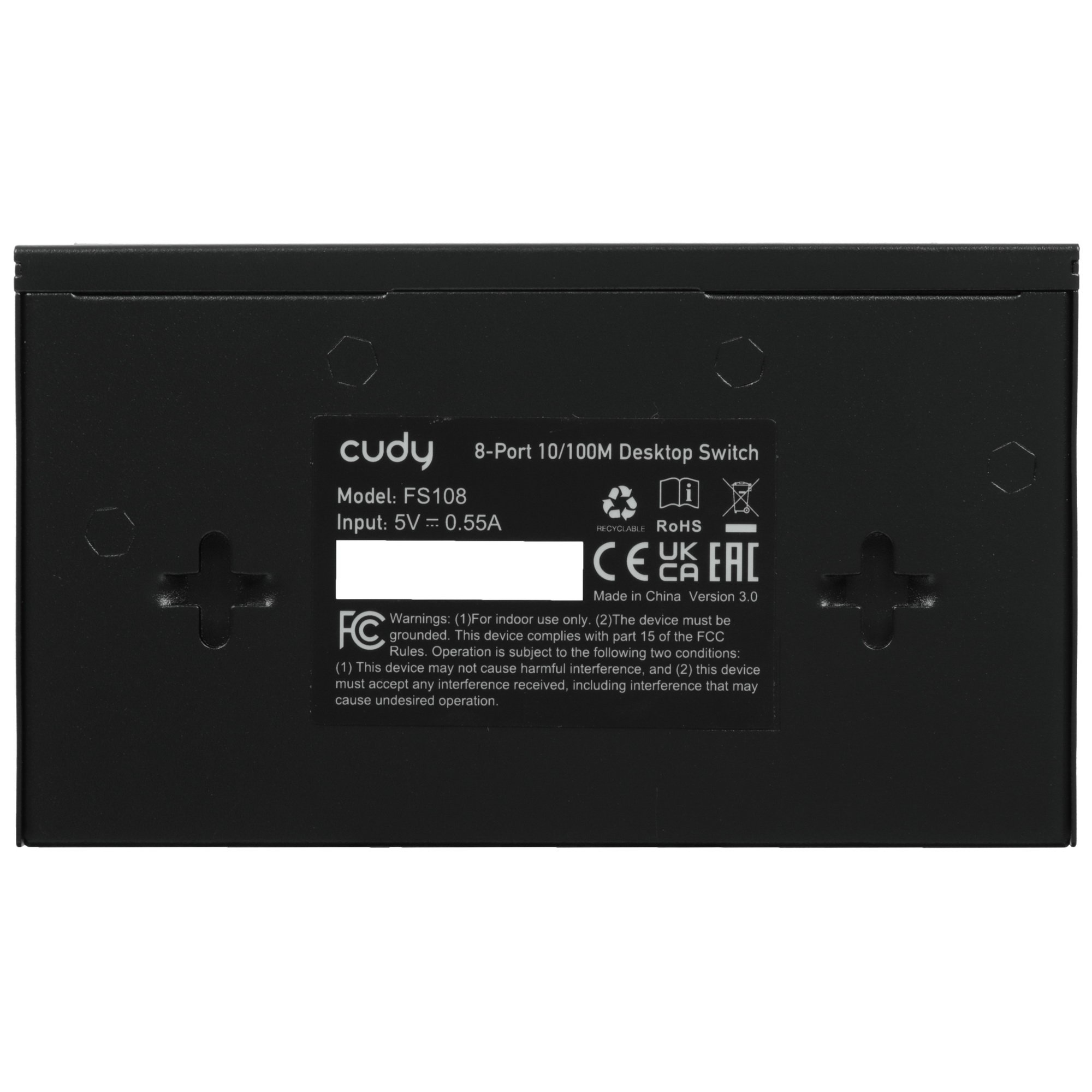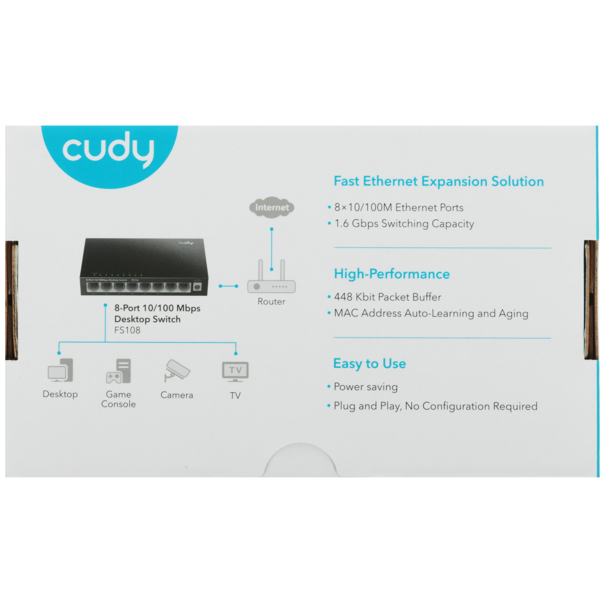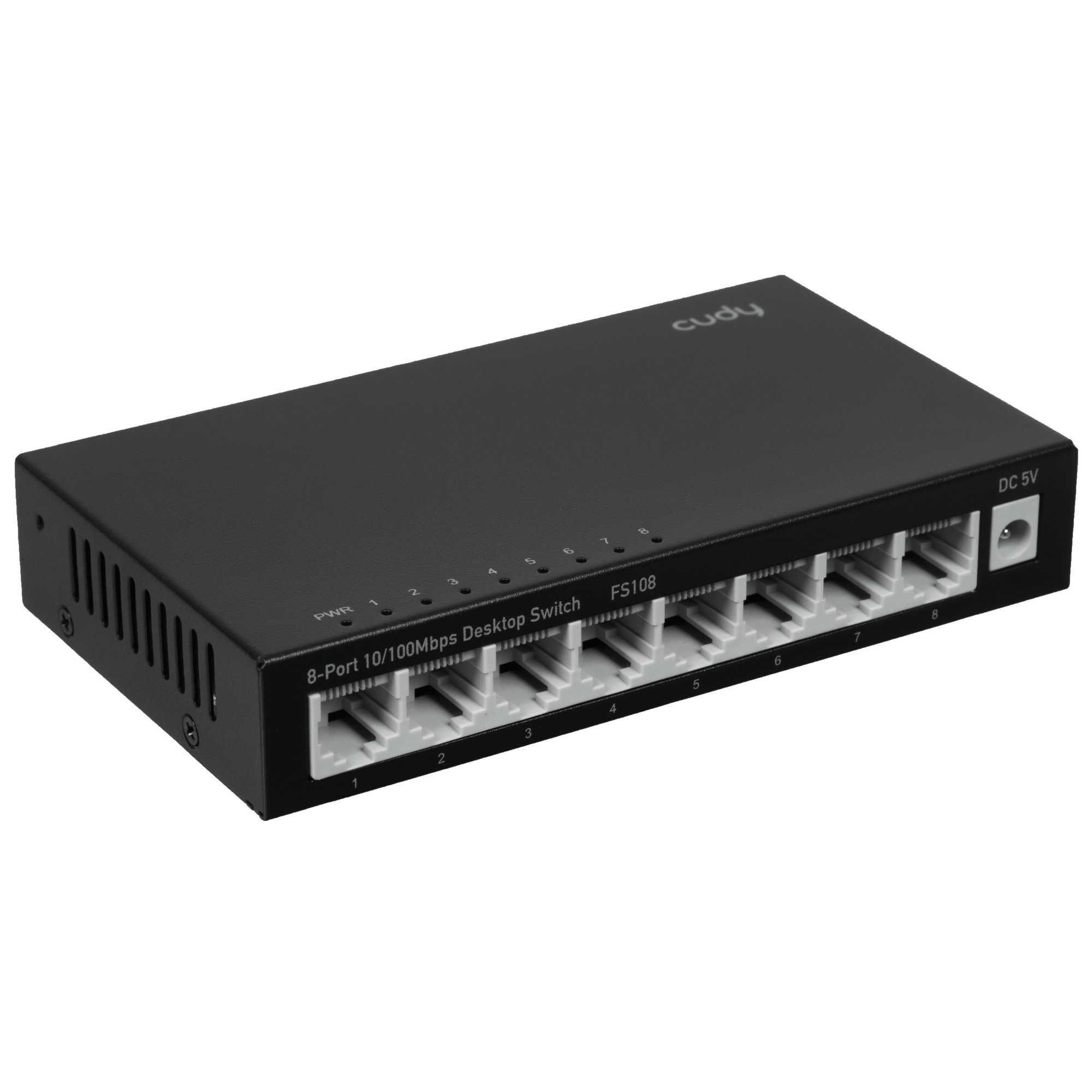 Для сохранения данных о МАС-адресах устройств коммутатор Cudy FS108 получает таблицу, в которой может содержаться до 512 адресов. На корпусе модели находятся индикаторы питания и активности. Питание сетевое устройство получает от внешнего адаптера сети 220 В с выходным напряжением 5 В и силой тока 0.55 А. Разместить коммутатор можно на стене или столе.
