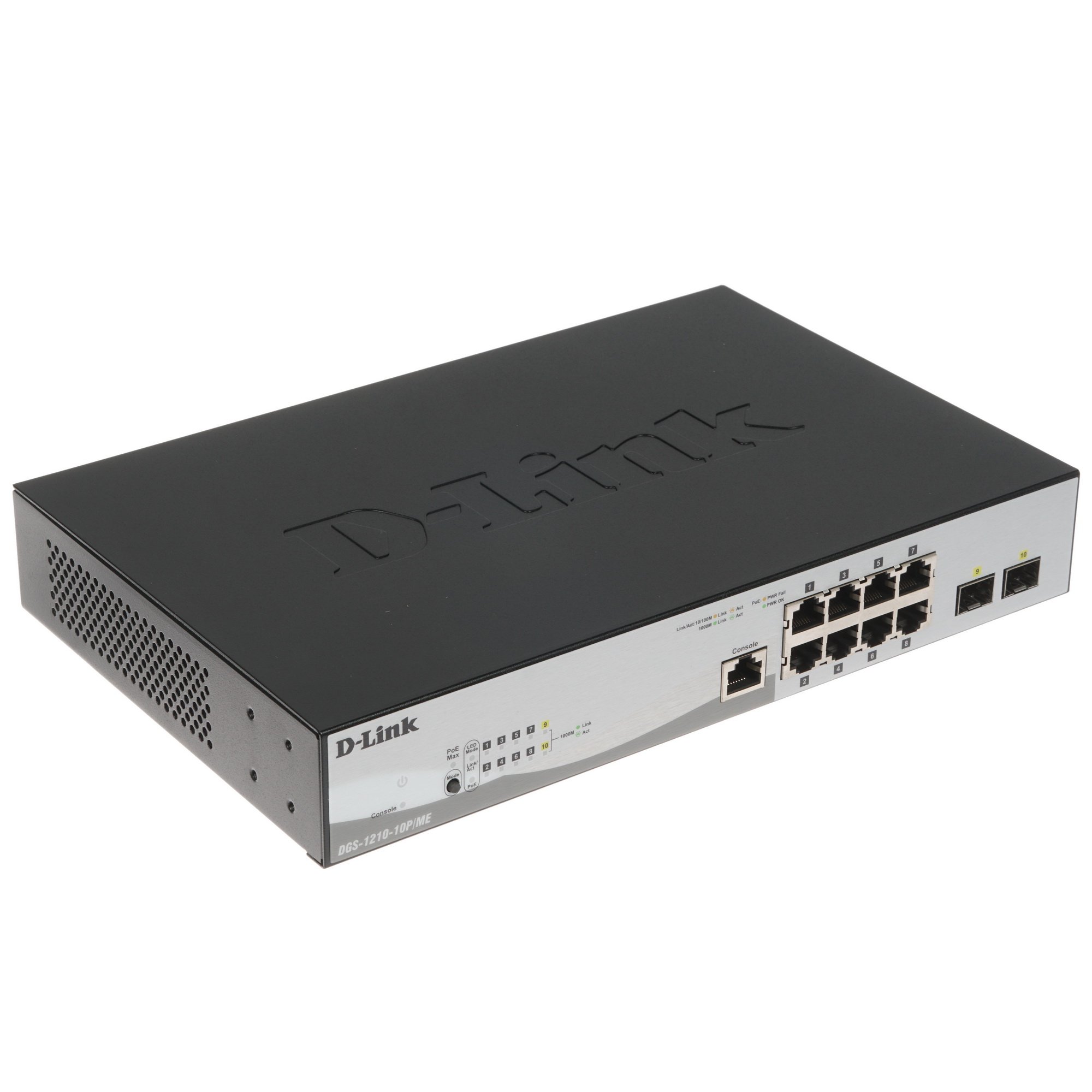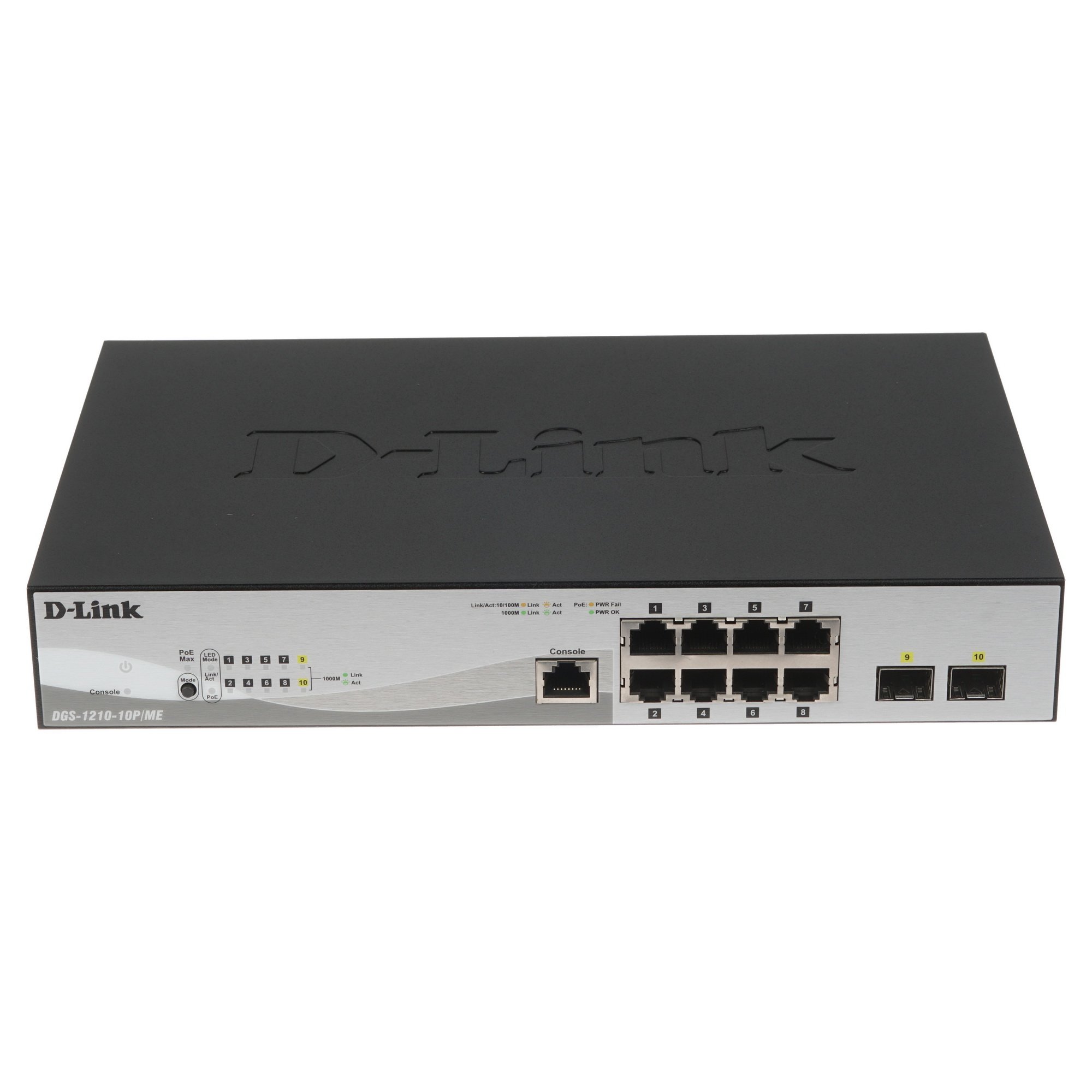 Коммутатор D-Link DGS-1210-10P/ME/B1A Управляемый 2 уровня с 8 портами 10/100/1000Base-T с поддержкой PoE и 2 портами 1000Base-X SFP