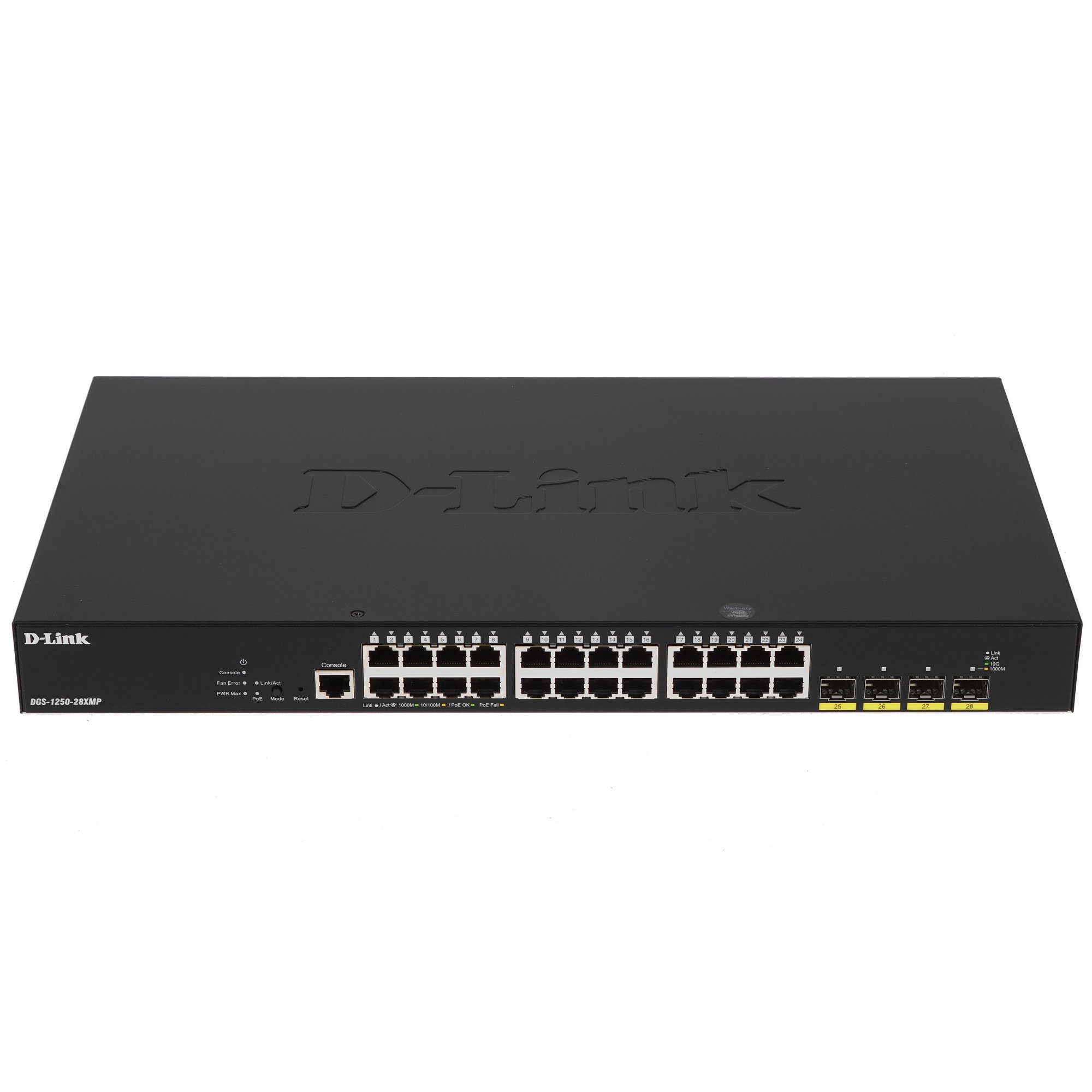 Коммутатор D-Link DGS-1250-28XMP/A1A, L2 Smart Switch with 24 10/100/1000Base-T ports and 4 10Gbase-X SFP+ ports (24 PoE ports 802.3af/802.3at (30 W), PoE Budget 370W).16K Mac address, 802.3x Flow Control, 4K