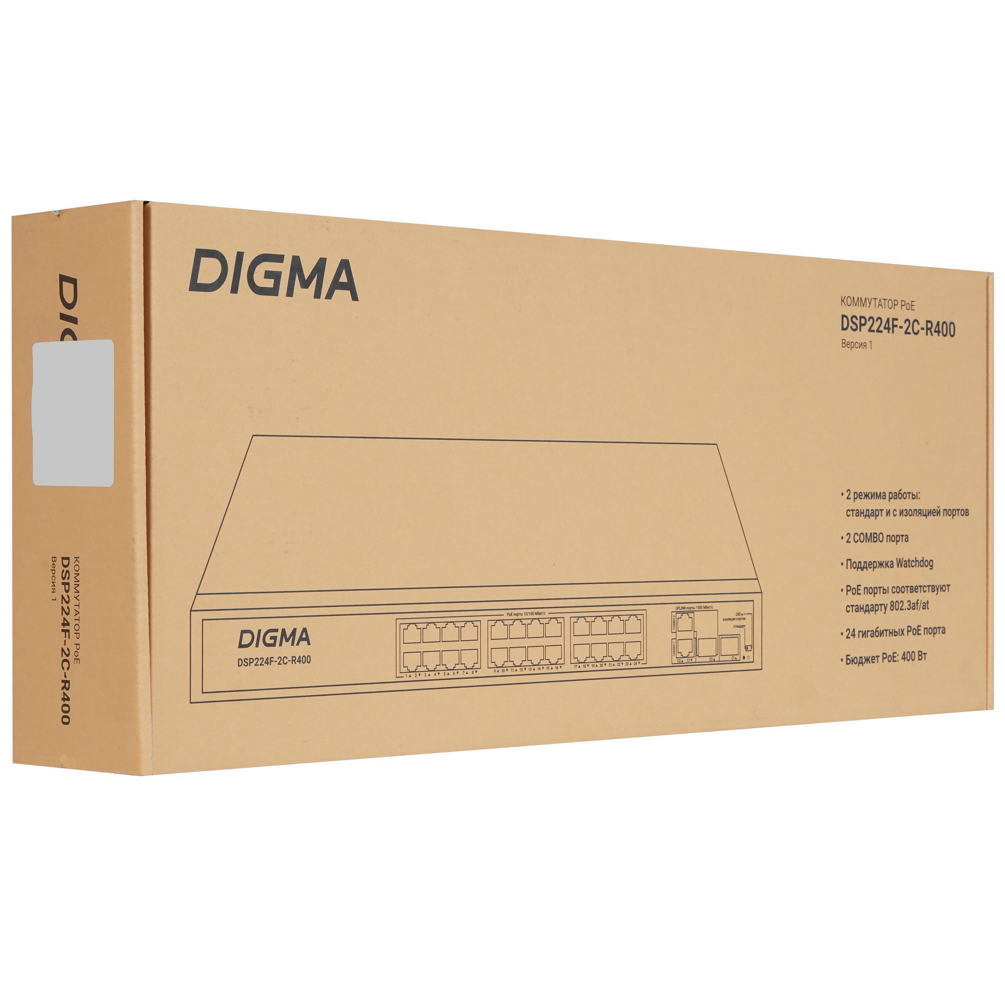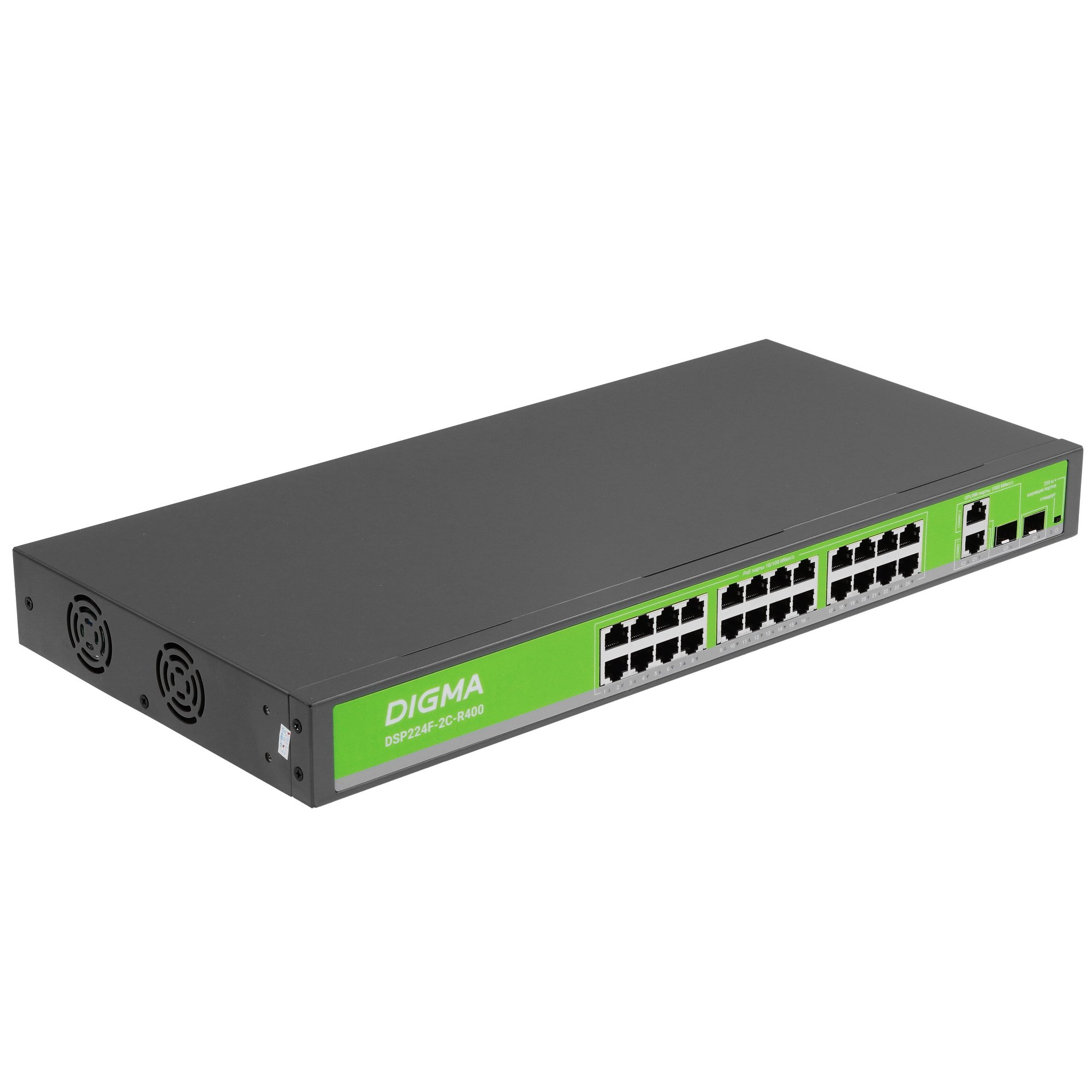 Коммутатор Digma DSP224F-2C-R400 V1 (L2) 24х100Мбит/с 24PoE