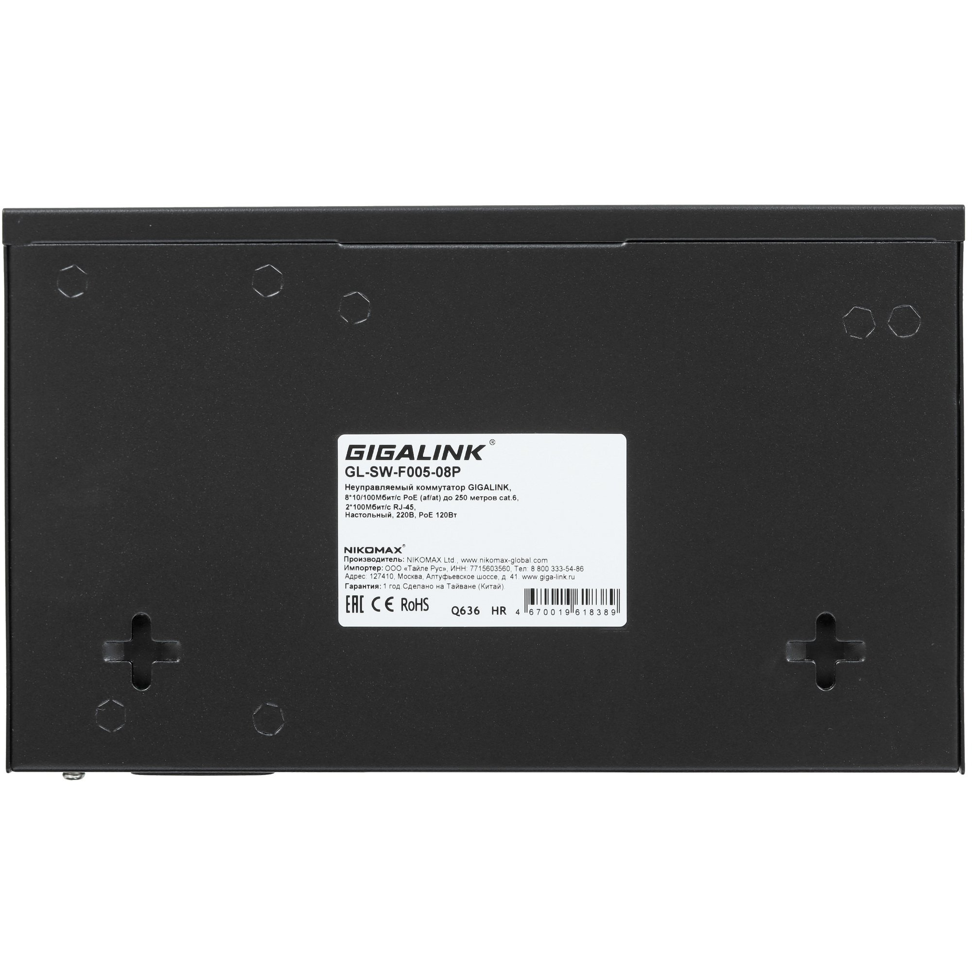 Коммутатор GIGALINK GL-SW-F005-08P - неуправляемый, 8 PoE (802.3af) порта 10/100Мбит/с до 250 метров cat.6, 2 Uplink порт 100Мбит/с