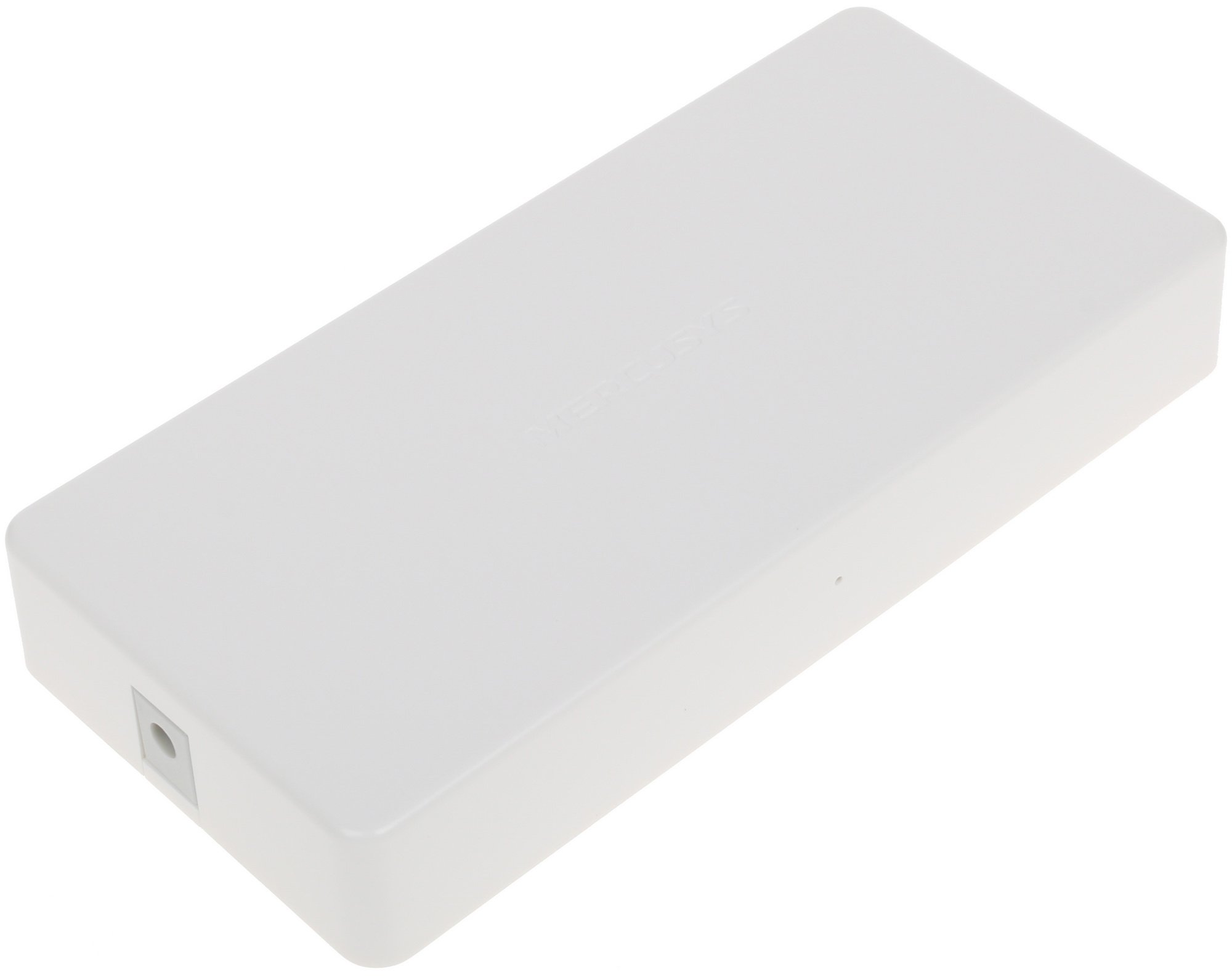 Устройство имеет компактные размеры (2.2x12.7 см) и предназначено для настольной установки. Метод коммутации – полу- и полный дуплекс. Внутренняя пропускная способность модели составляет 1.6 Гбит/с. Белый корпус модели не усложнен вентиляторами.