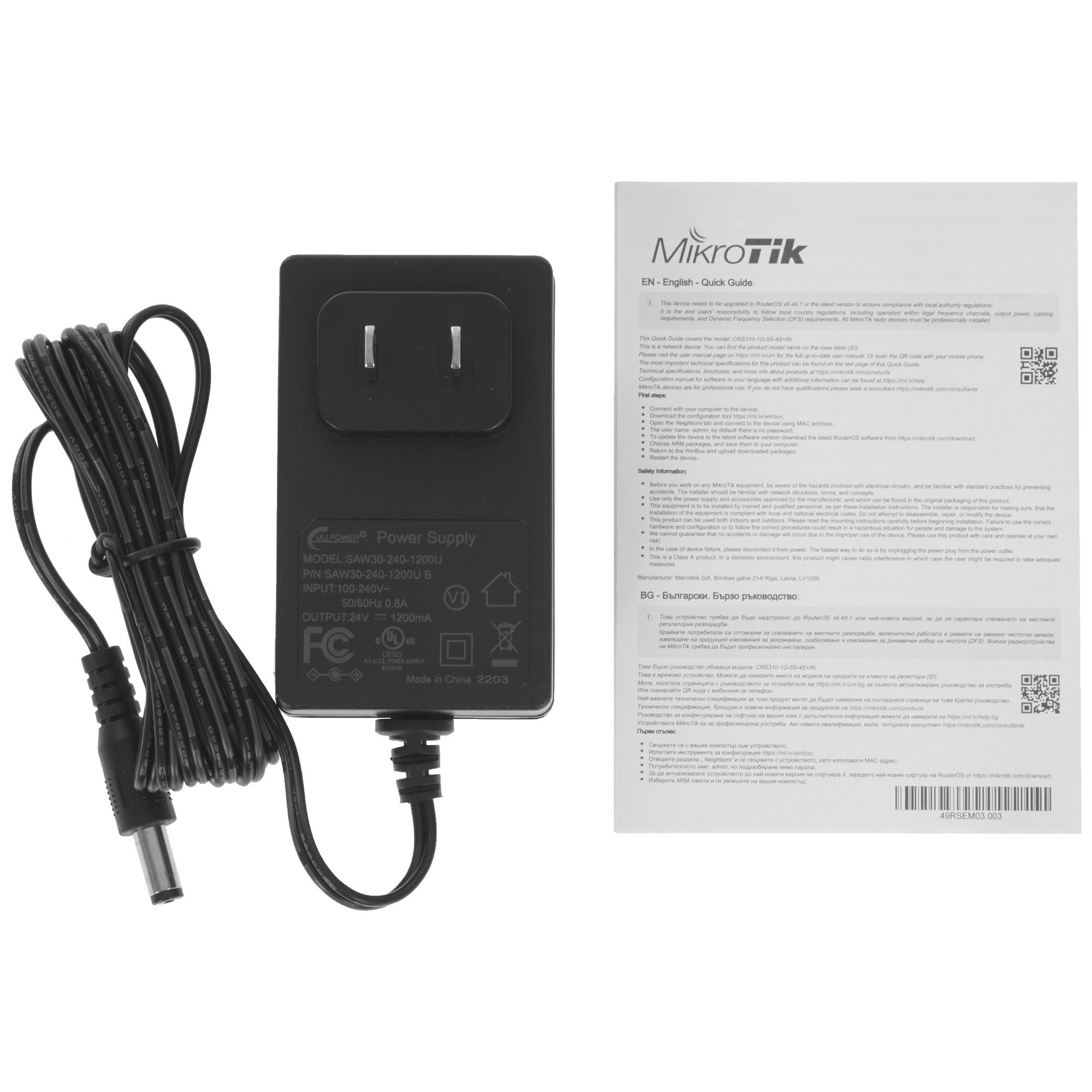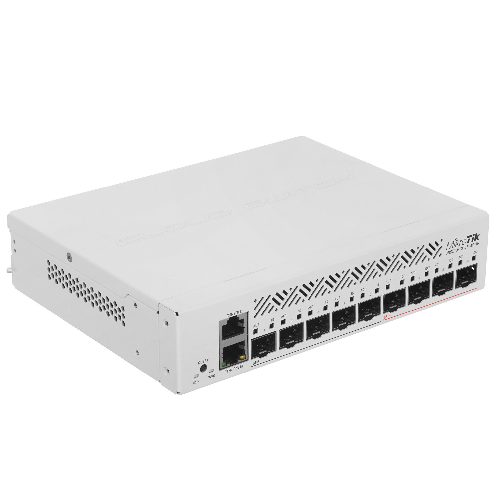 Коммутатор MikroTik Cloud Router Switch CRS310-1G-5S-4S+IN with 800 MHz CPU, 256 MB RAM, 4xSFP+, 5xSFP cages, 1xGbit LAN port, RouterOS L5, desktop case, rackmount ears, PSU
