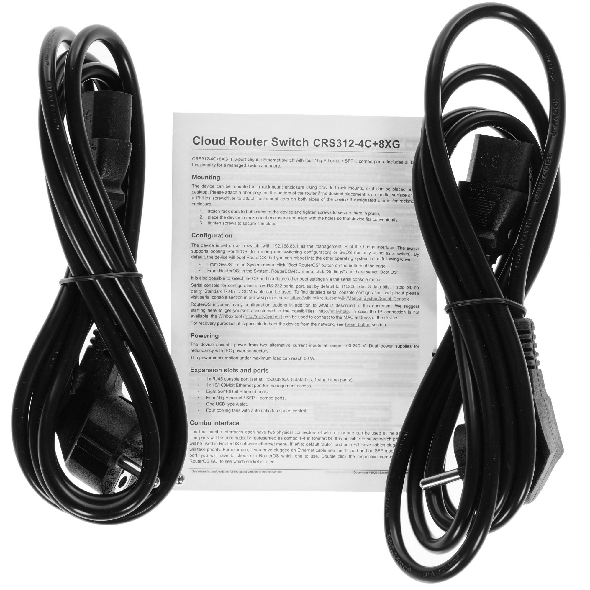 MikroTik CRS312-4C+8XG-RM Cloud Router Switch 8х 1G/2.5G/5G/10G RJ45, 4х 10G RJ45/SFP+ with RouterOS L5, 1U rackmount enclosure