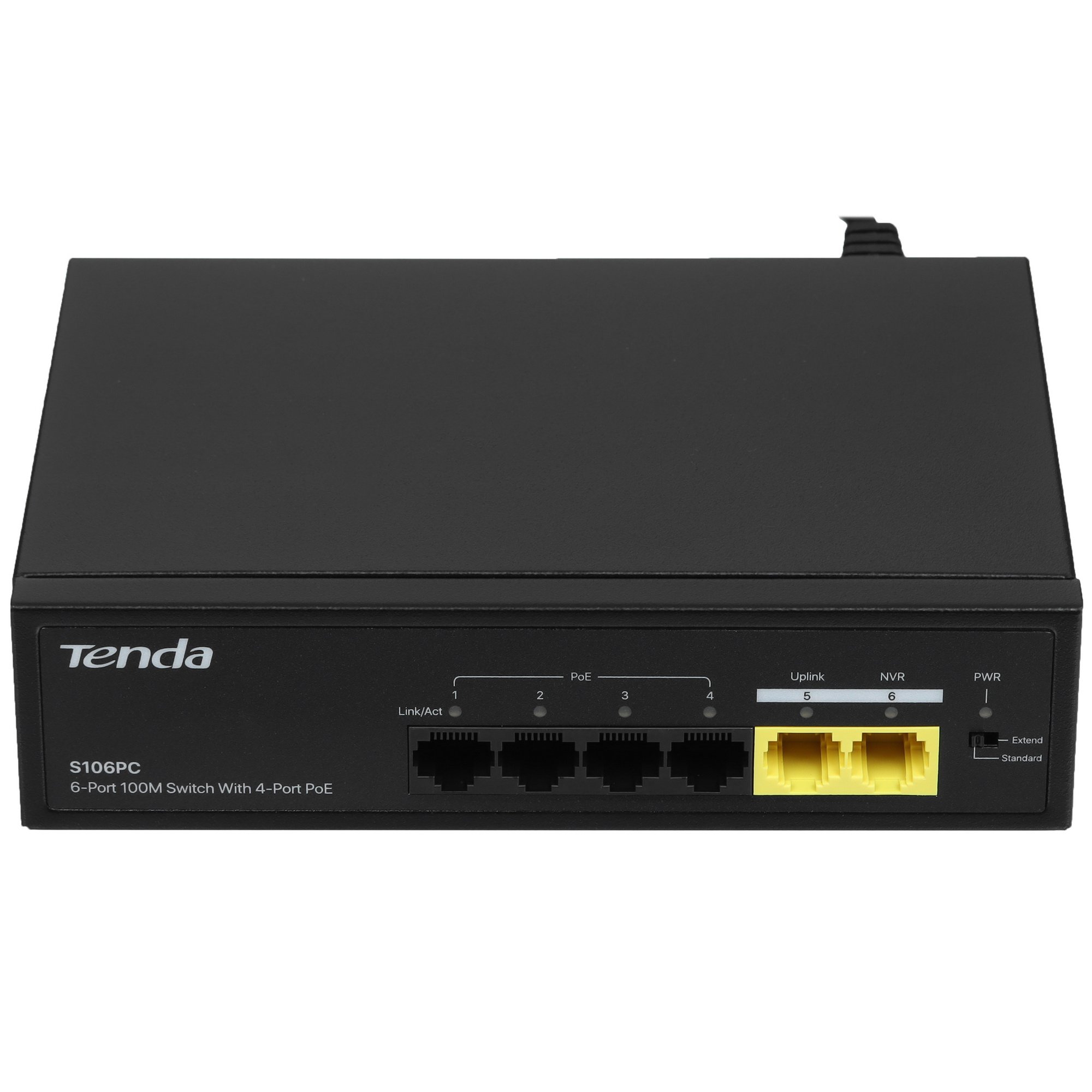 Неуправляемый коммутатор Tenda S106PC оснащен шестью медными портами (RJ-45), четыре из которых поддерживают PoE с бюджетом 50 Вт. Эта технология позволит подключенному оборудованию получать питание по свободным от передачи данных линиям витой пары. В коммутаторе Tenda S106PC реализована функция приоритизации QoS. Она отвечает за обработку важных данных с минимальными задержками, чтобы адресат получил необходимую информацию как можно быстрее. Модель в черном корпусе поддерживает размещение на столе и настенный монтаж.