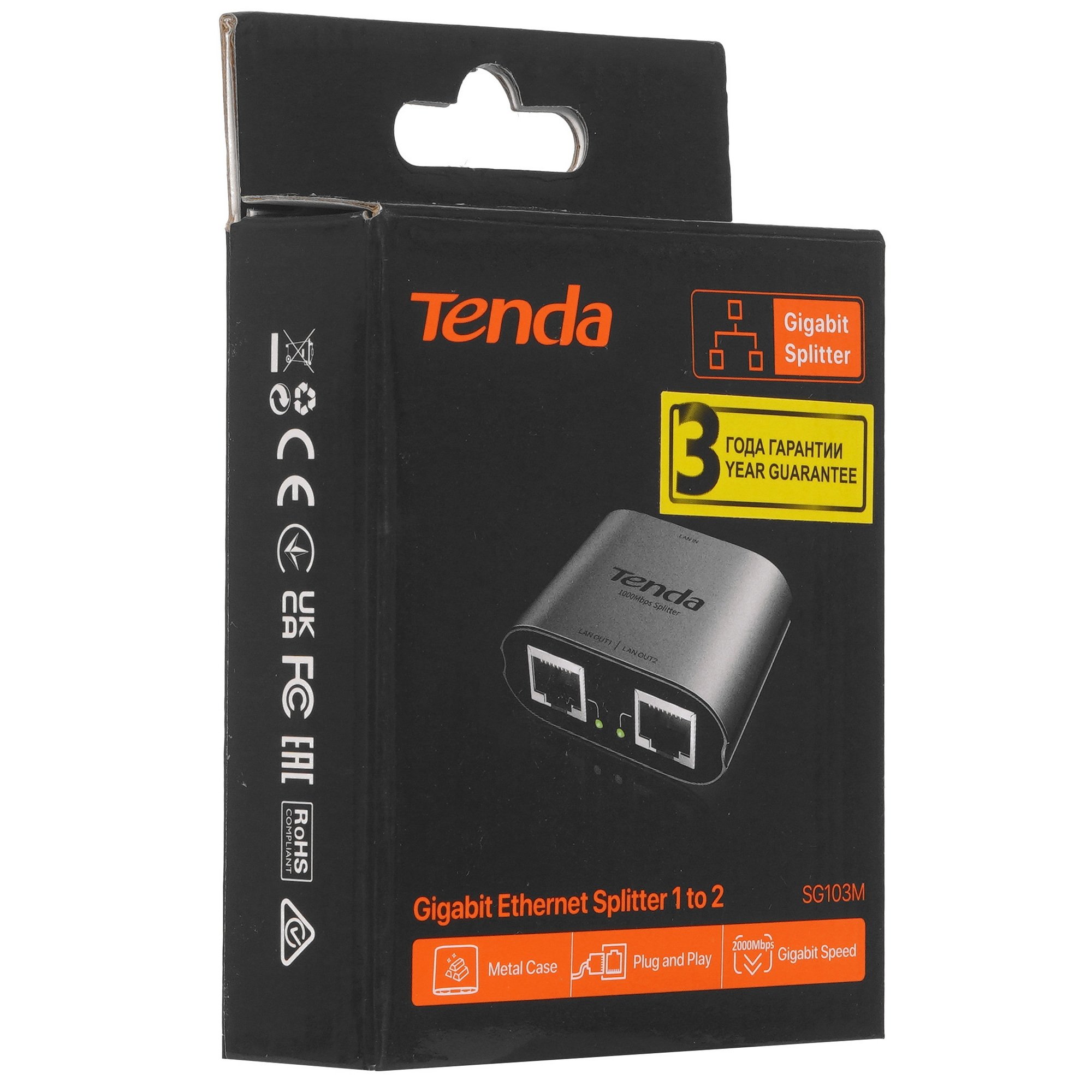 Разветвитель для интернет кабеля Tenda SG103M, LAN in 1х1 Гбит/с, LAN out 2х1 Гбит/с, питание по Type-C