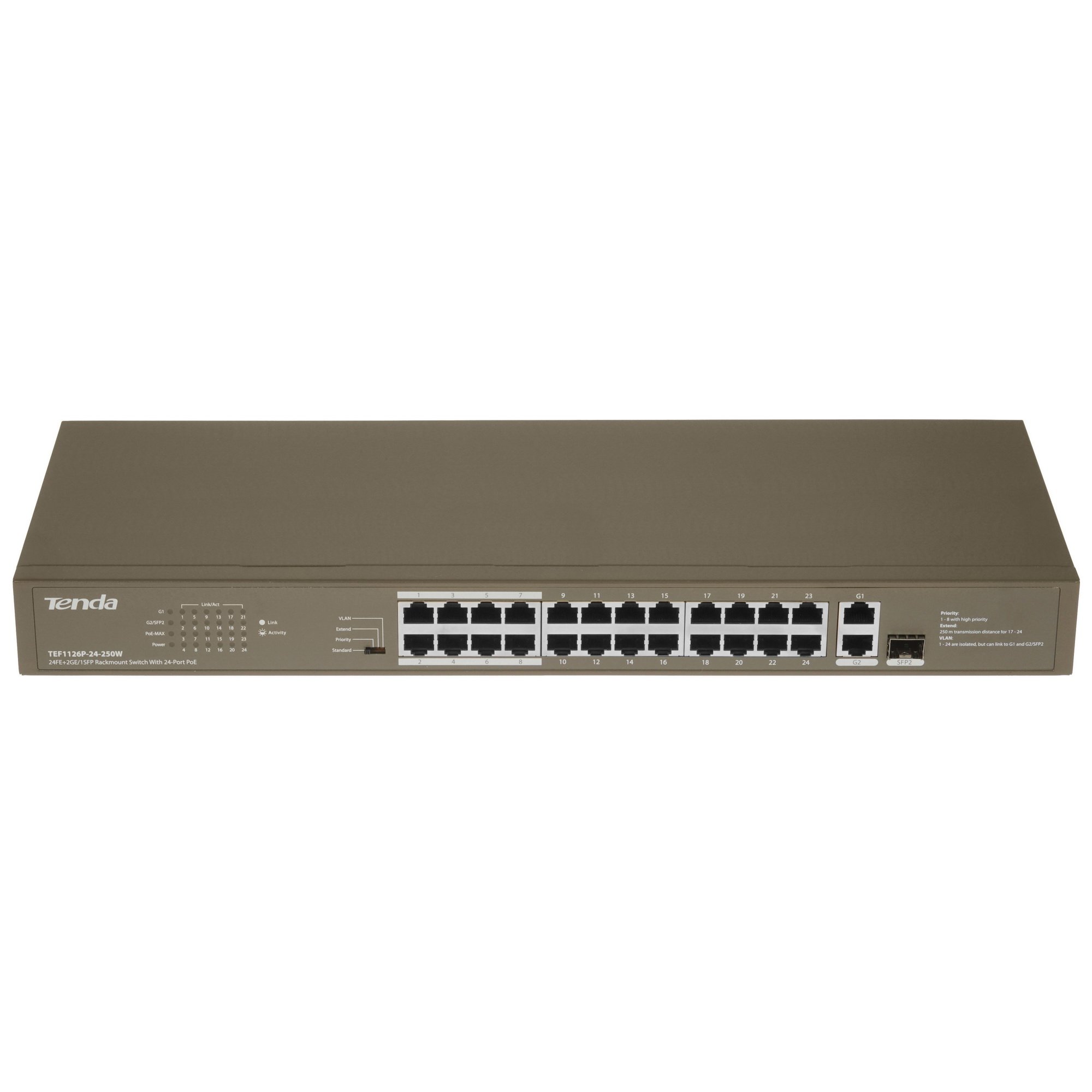 Коммутатор Tenda TEF1126P-24-250W 26-Портовыйбез управления FE c 24 портами PoE
