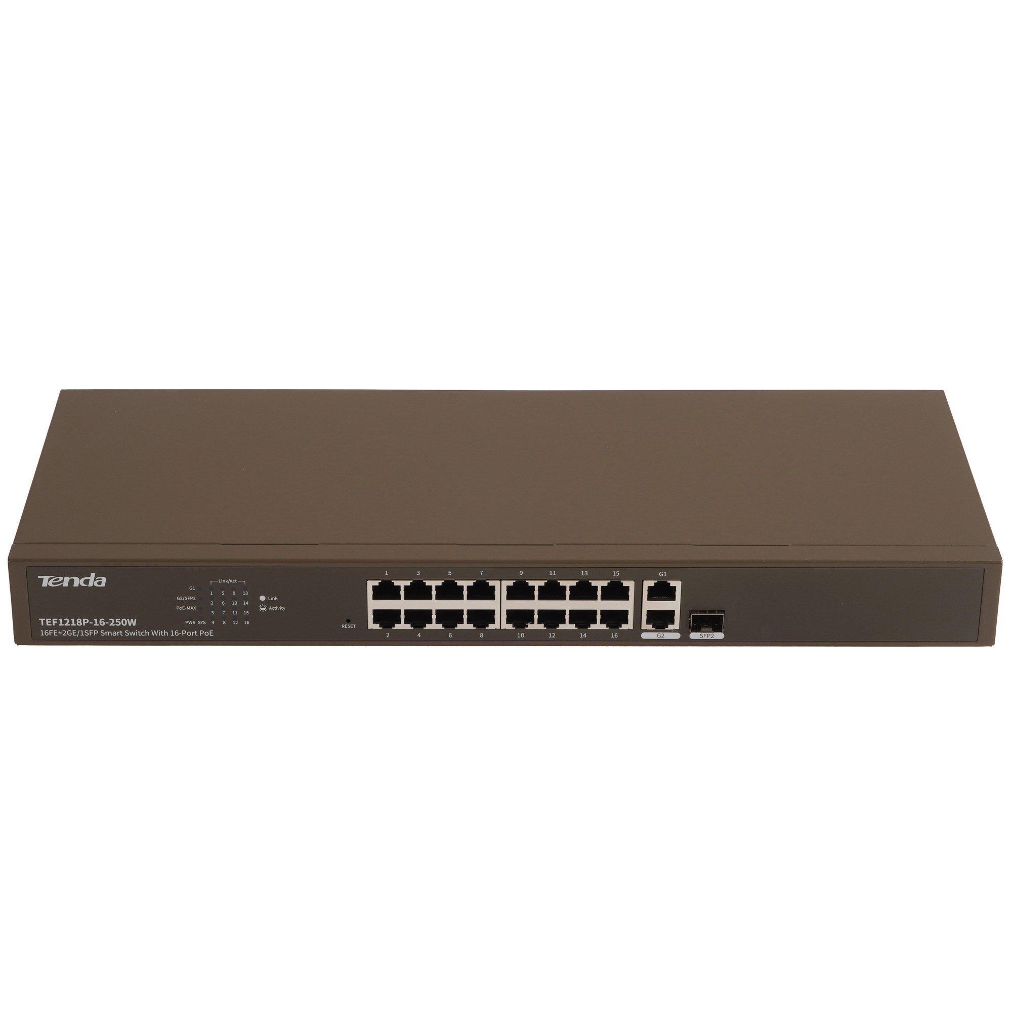 Коммутатор управляемый PoE Tenda F1218P-16-250W, 18 портов, 16х100 Мбит/с, 2x1 Gbит/с, SFP 1x1 Gbит/с