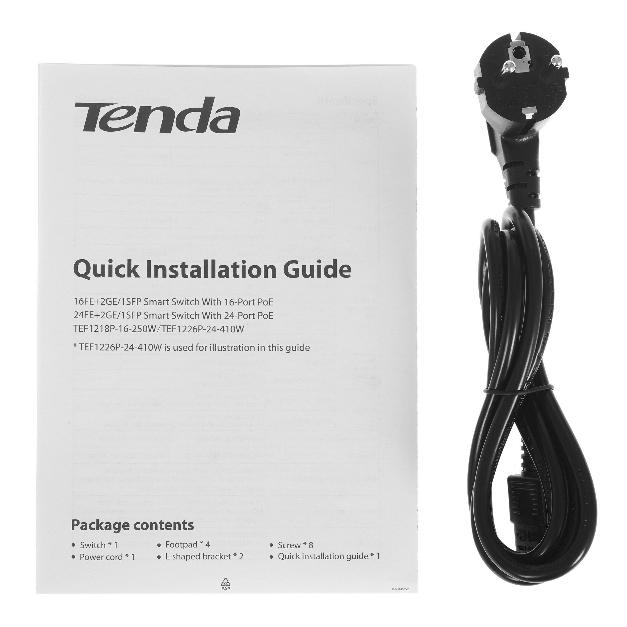 Коммутатор Tenda TEF1218P-16-250W в жестком корпусе подходит для настольного размещения или установки в стойку. Имеется поддержка технологии PoE для упрощения подключения оборудования и обустройства системы. Функциональная модель дает широкие возможности настроек, контроля и диагностики сети. Установленный в коммутаторе микропроцессор позволяет управлять приоритетами трафика, настраивать безопасность сети и применять различные протоколы резервирования.