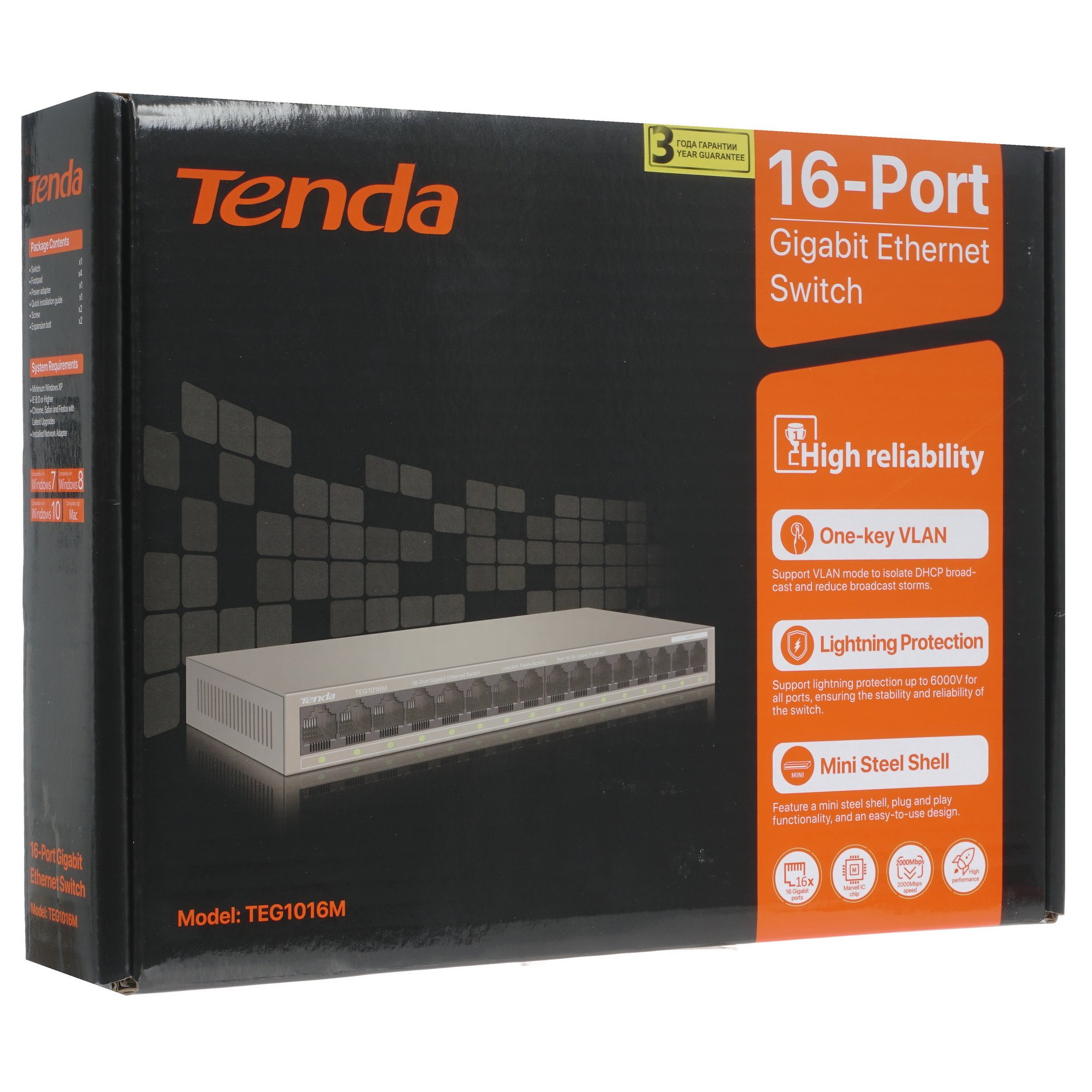 Коммутатор Tenda TEG1016M неуправляемый 16-портовыйGigabit Ethernet