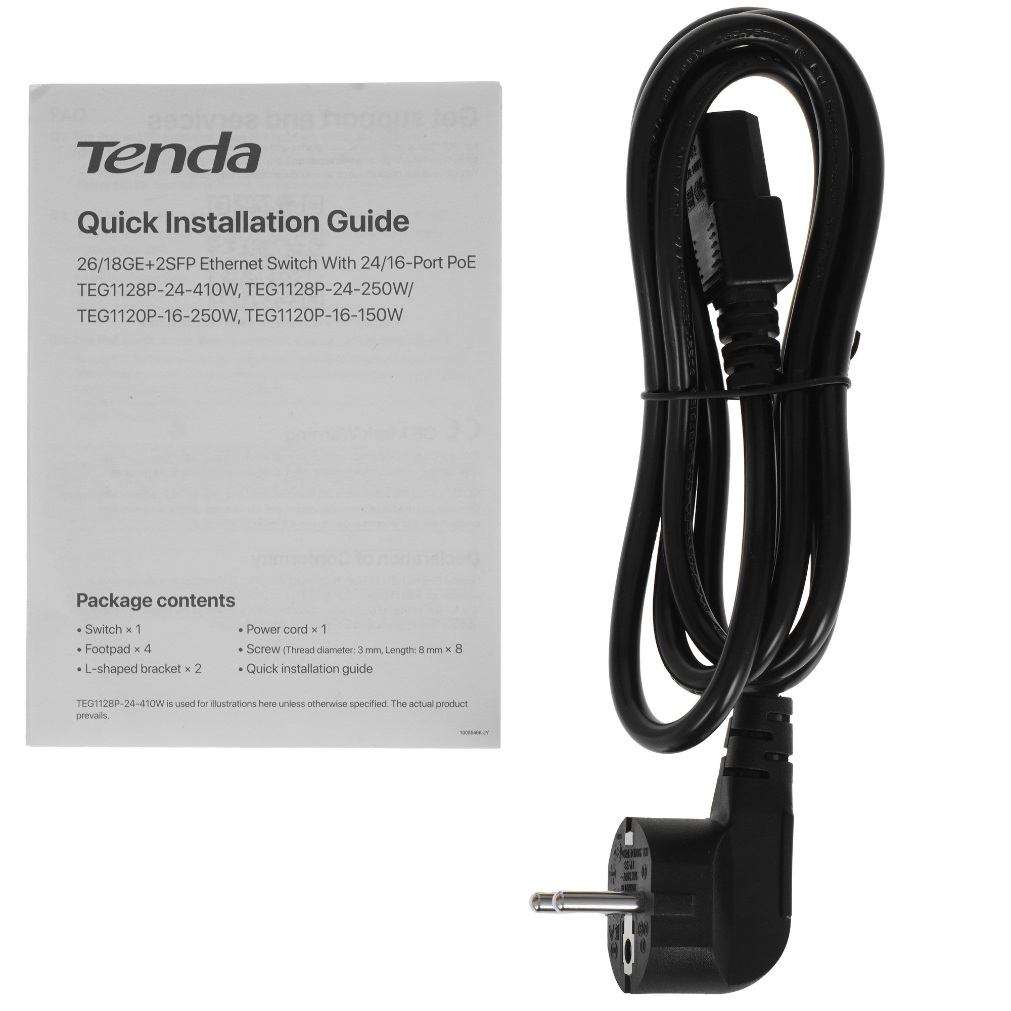 Коммутатор неуправляемый Tenda TEG1120P-16-250W PoE, 18 портов, 18x1 Gbит/с, PoE 16х30 Вт (до 250Вт), SFP 2x1 Gbит/с