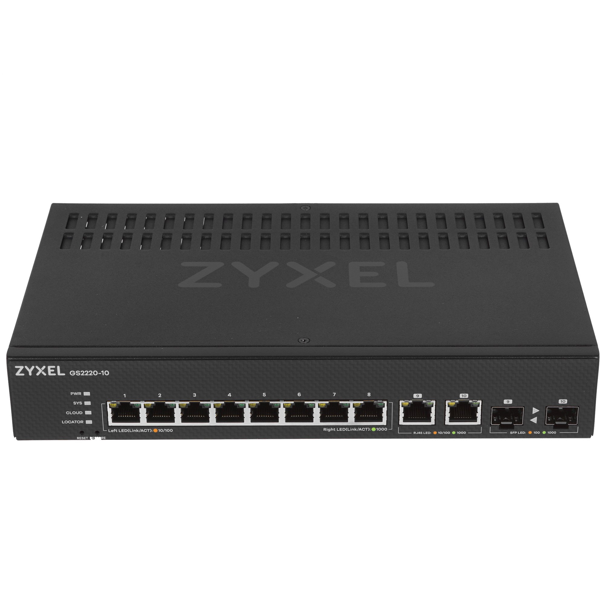 Коммутатор Zyxel GS2220-10 относится к управляемому типу устройств и оснащен микропроцессором, благодаря которому отличается расширенным набором функций и поддерживаемых протоколов для управления через сеть. Кроме того, модель может работать и в неуправляемом режиме и передавать данные подключенным клиентам. Для этого в коммутаторе предусмотрена таблица на 16000 строк. Кроме того, благодаря поддержке различных протоколов безопасности данное устройство отличается высокой защищенностью соединения. Подключение оборудования осуществляется посредством 10 стандартных сетевых портов, из которых 2 соответствуют типу SFP.