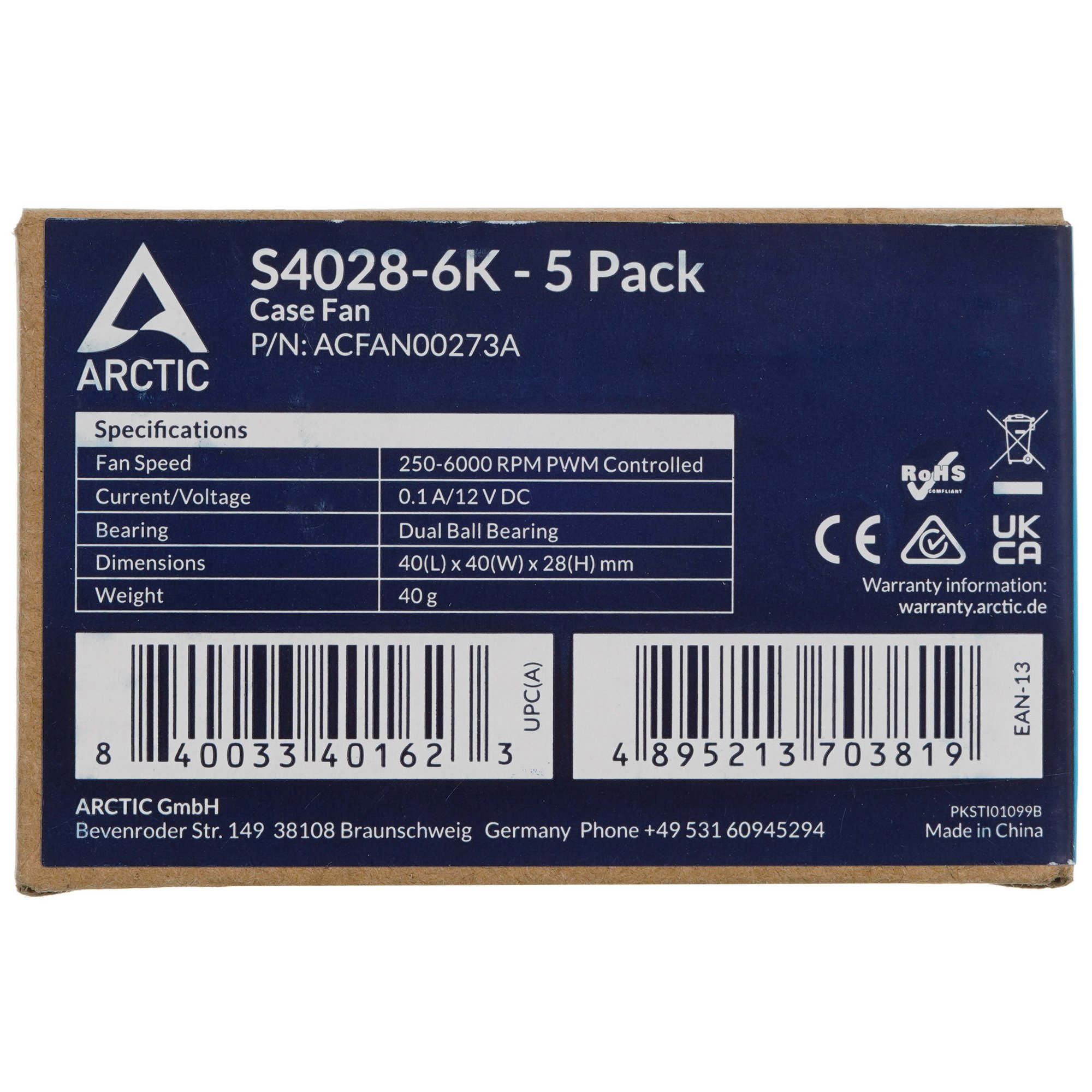 Комплект вентиляторов для корпуса Arctic S4028-6K (5 шт.) черный, 40 мм, 6000 об/мин, 4 pin