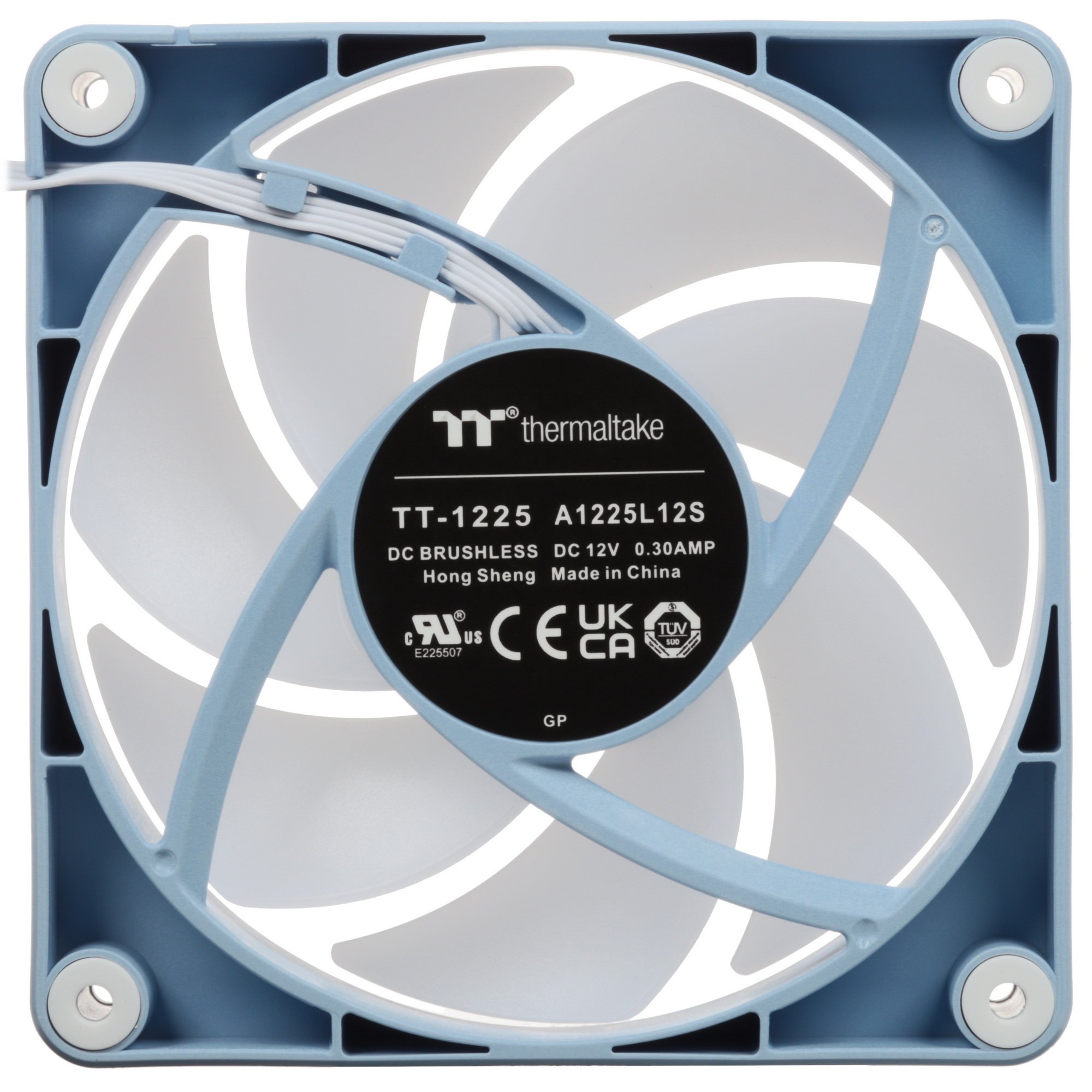 Для подключения вентиляторов Thermaltake CT120 ARGB Hydrangea Blue к материнской плате используется интегрированный кабель с разъемами 4 pin Male / 4 pin Female. На крыльчатке каждого вентилятора установлены по 9 адресуемых светодиодов с поддержкой световых эффектов. Управление ARGB-подсветкой происходит с помощью ПО при синхронизации с платой. Вентиляторы оснащены гидродинамическим подшипником, уменьшающим шум лопастей до уровня 25.8 дБ. Антивибрационная прокладка поглощает вибрации, чтобы не создавать дискомфорта во время работы вентиляторов.