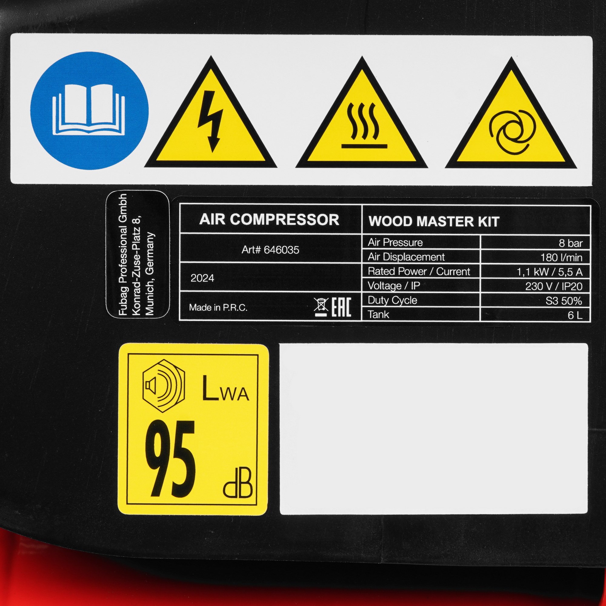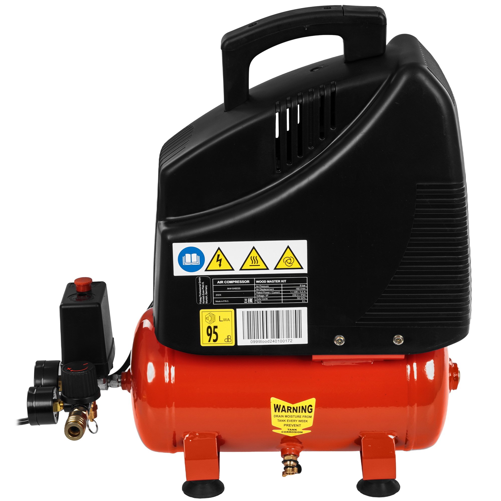 Компрессор поршневой Fubag Wood Master Kit безмасляный 180л/мин 6л 1100Вт красный/черный
