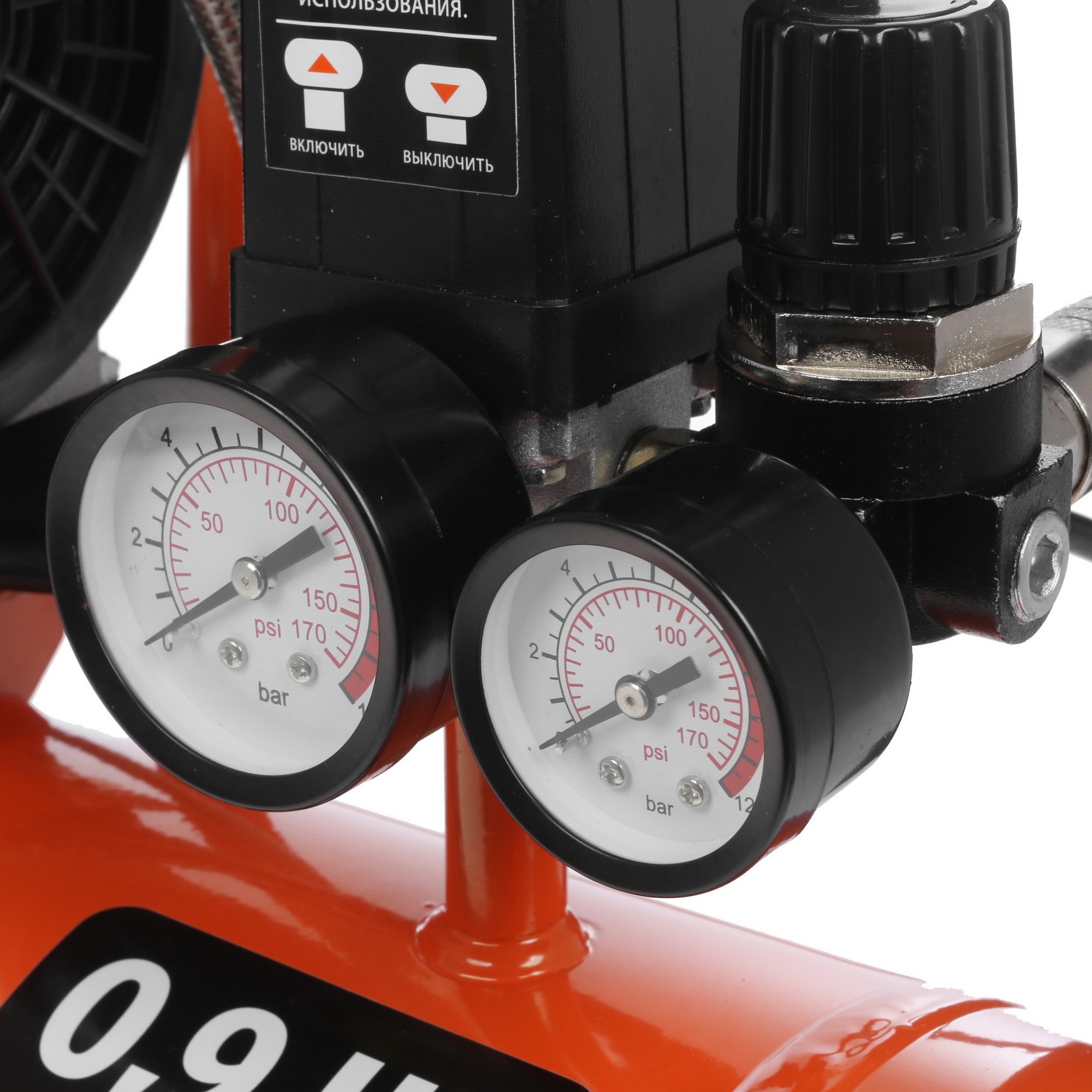 Компрессор оснащается манометрами для контроля текущих параметров. Они аналогового типа, удается отслеживать точные значения. Двигатель имеет защиту от перегрузки, за счет чего увеличивается его надежность.