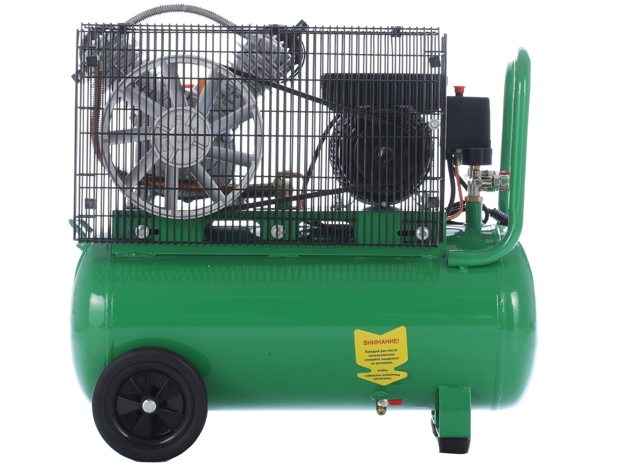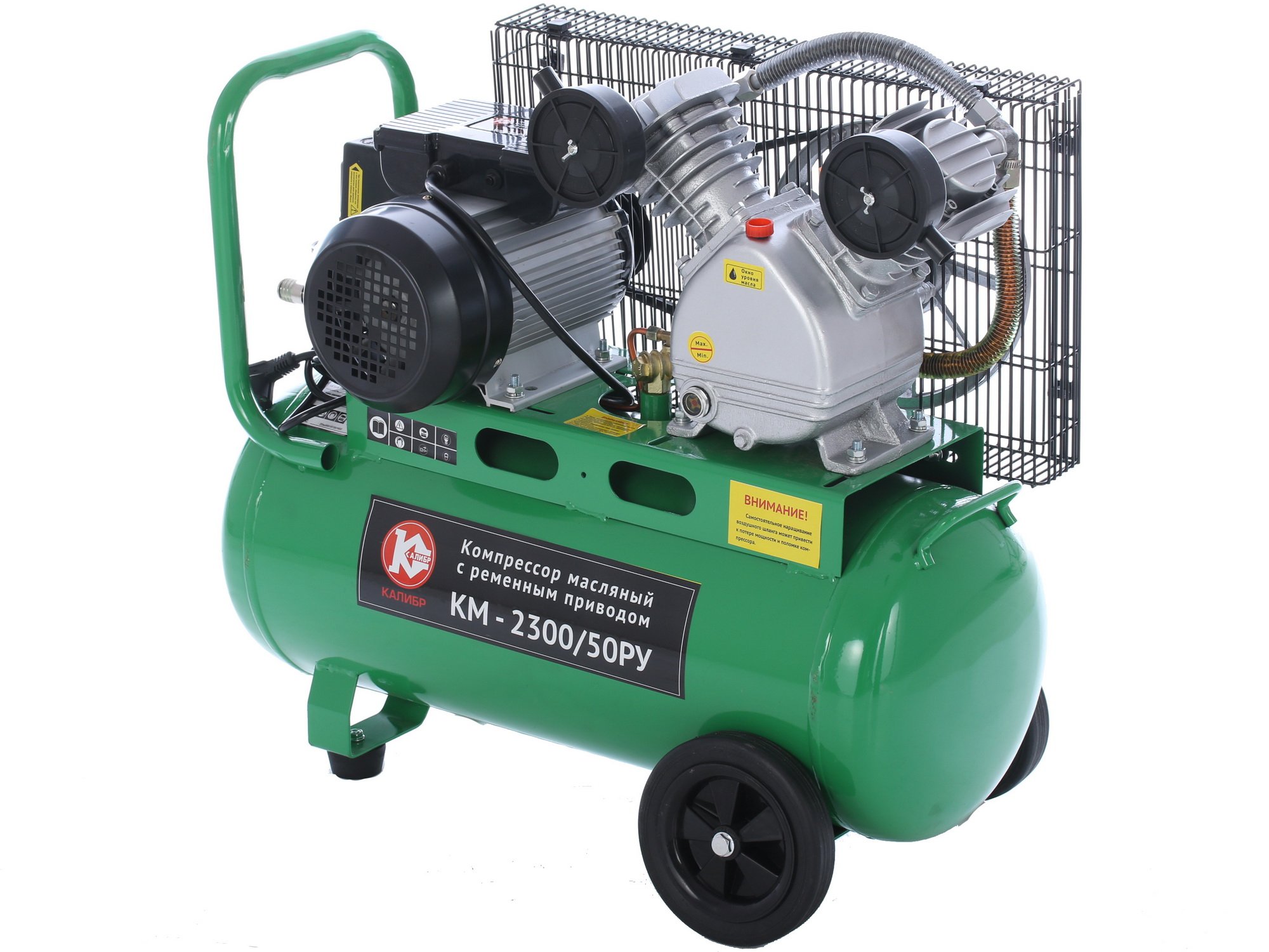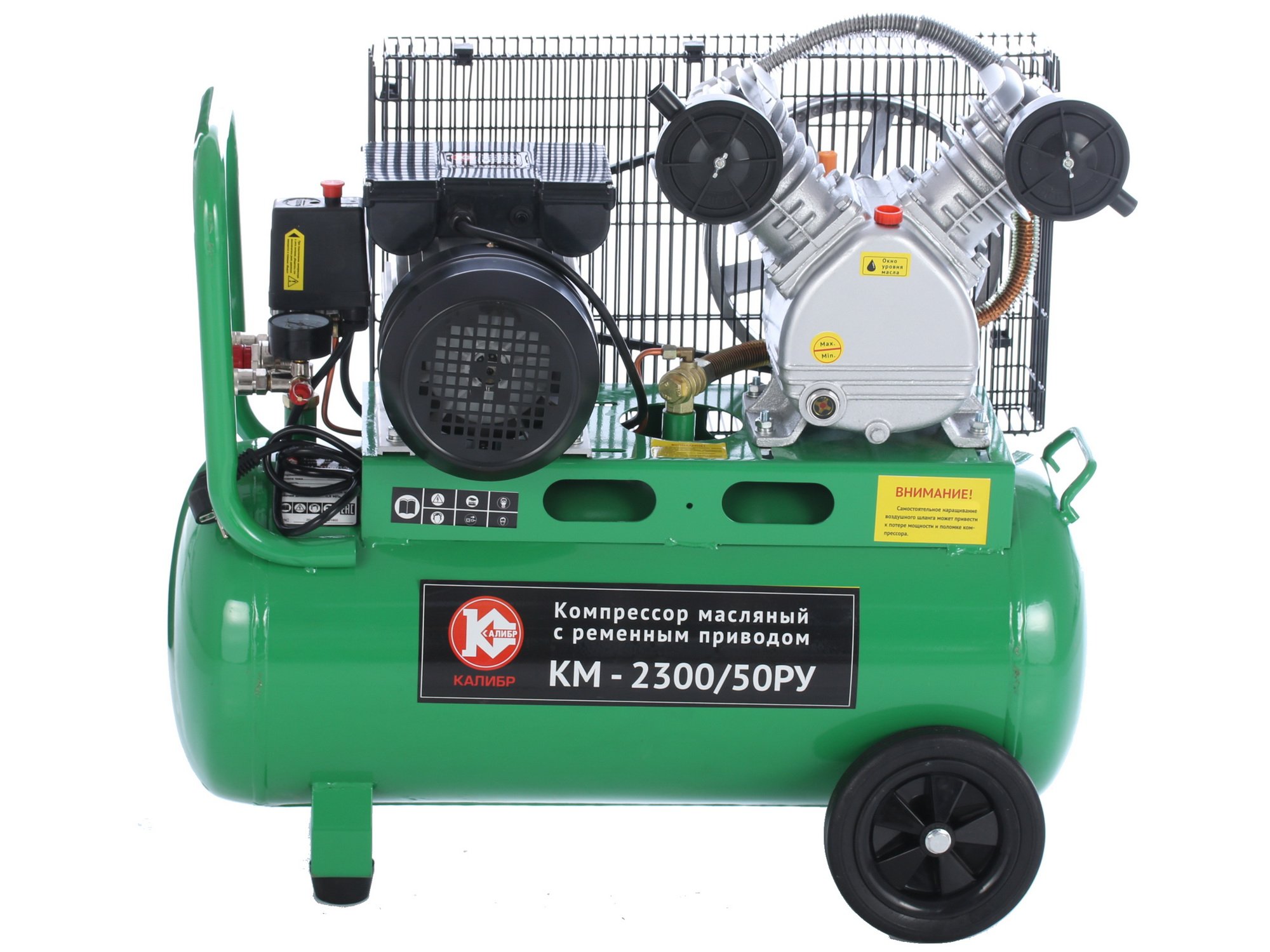 Компрессор Калибр КМ-2300/50РУ - это необходимое устройство для пневматического оборудования, при помощи которого оно обеспечивается сжатым воздухом. Используя представленную технику, вы сможете добиться снижения энергозатрат и увеличения качества и скорости работ. Рассматриваемая модель обладает габаритами 360x720x840 мм (ширина, высота и длина соответственно) и весит 54 кг. Несмотря на приличные размеры и вес, устройство можно легко перемещать благодаря удобной ручке и колесам, присутствующим в его конструкции.