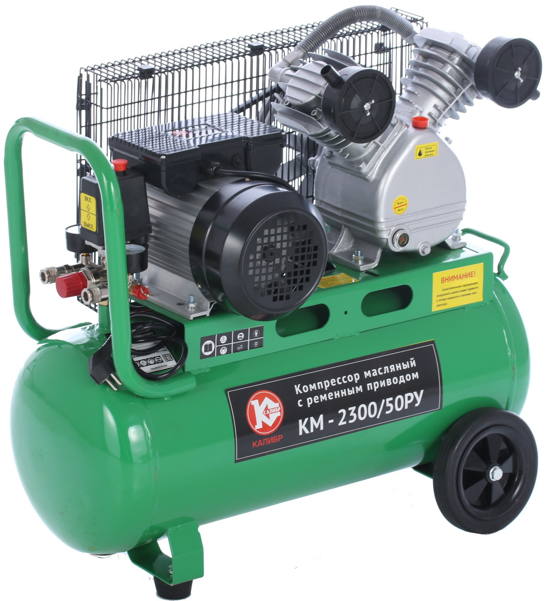 Поршневой масляный компрессор Калибр КМ-2300/50РУ с ременным приводом порадует своего владельца своей надежностью и широкой областью применения (шиномонтаж, авторемонт, строительство и т.д.). Объем ресивера у данной модели стандартный - 50 л. Обладающее приличной мощностью (2300 Вт) устройство готово продемонстрировать высокую производительность на уровне 336 л/мин. Встроенный манометр позволит вам визуально контролировать давление воздуха, выдаваемого компрессором. Эксплуатация представленной модели допускается при рабочем давлении, не превышающем 8 Бар, и при подключении к электросети с напряжением 220 В. Устройство получило систему защиты двигателя от перегрева и систему автоматического повторного запуска при аварийном отключении.