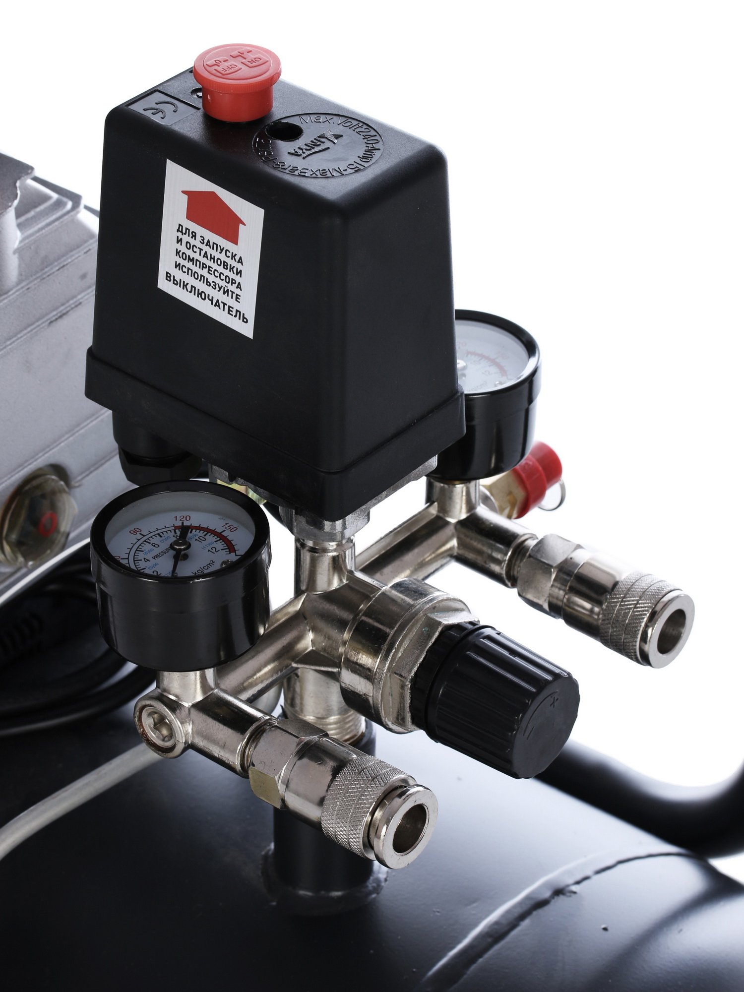 Рабочее давление в ресивере производительный компрессор Парма K-1800/50КМ поддерживает автоматически: как только сжатый воздух расходуется до определенного уровня, аппарат включается и восполняет давление. Возможностей компрессора хватает для обеспечения работы любого пневматического инструмента - отбойников, краскопультов, гайковертов. Перемещать его к месту проведения работ помогут пластиковые колеса с резиновыми шинами и одна удобная ручка.