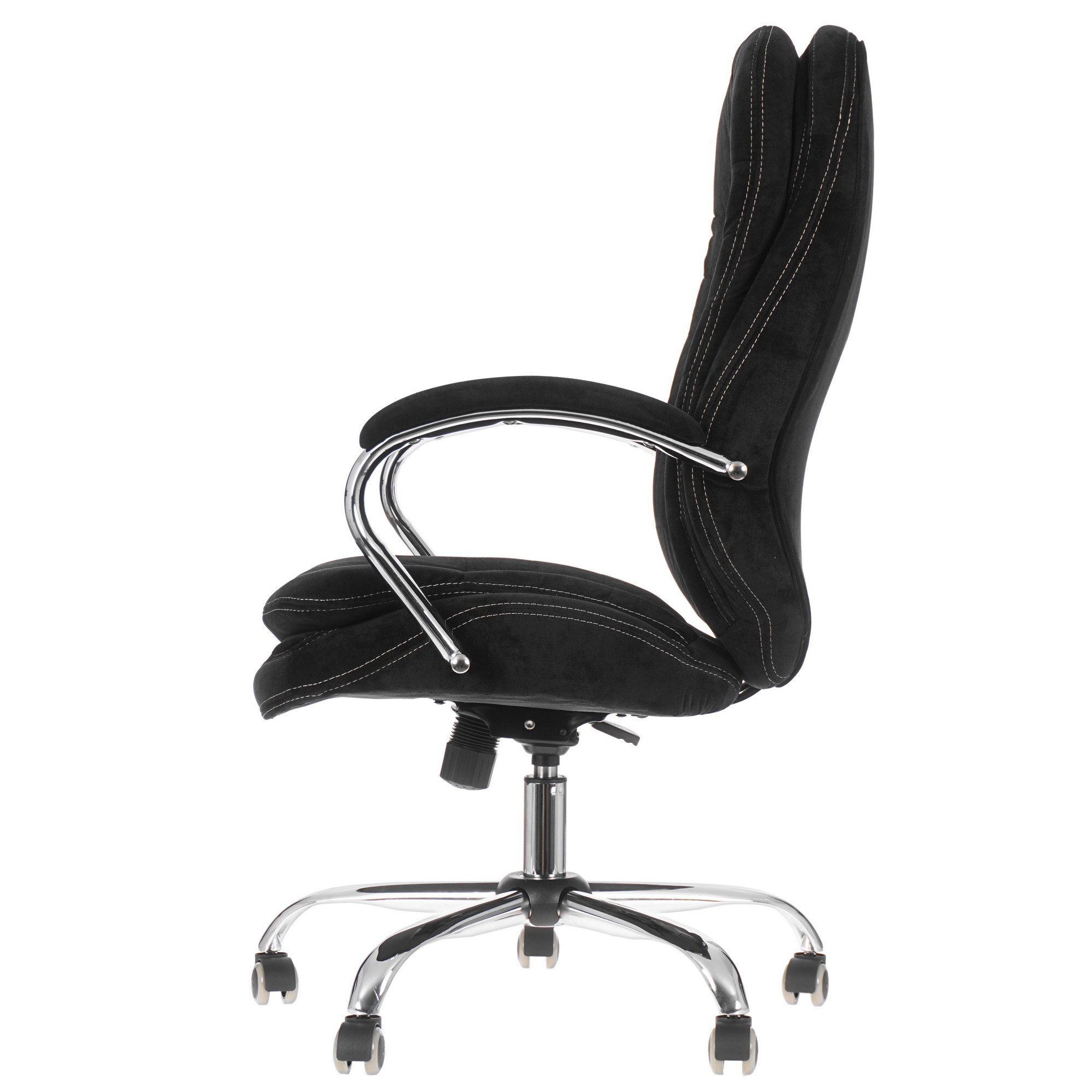 Кресло офисное Бюрократ T-9950SL устанавливается на надежную крестовину из хромированного металла. Максимальная нагрузка, которую изделие выдерживает, ‒ 150 кг. Благодаря роликам из полиуретана кресло можно свободно перемещать по любым напольным и ковровым покрытиям. Обивка черного цвета выполнена из мягкой, тактильно приятной ткани. Наполнитель из поролона делает сидение и спинку удобными для длительной работы за компьютером.