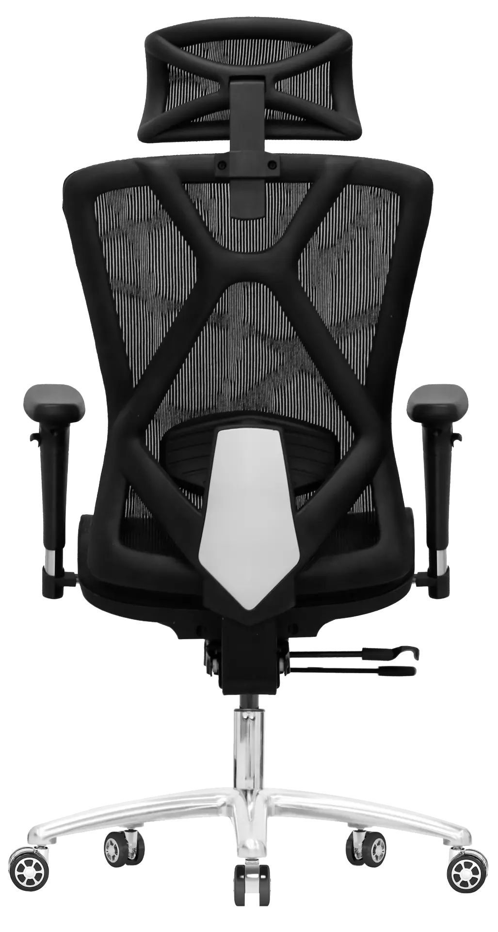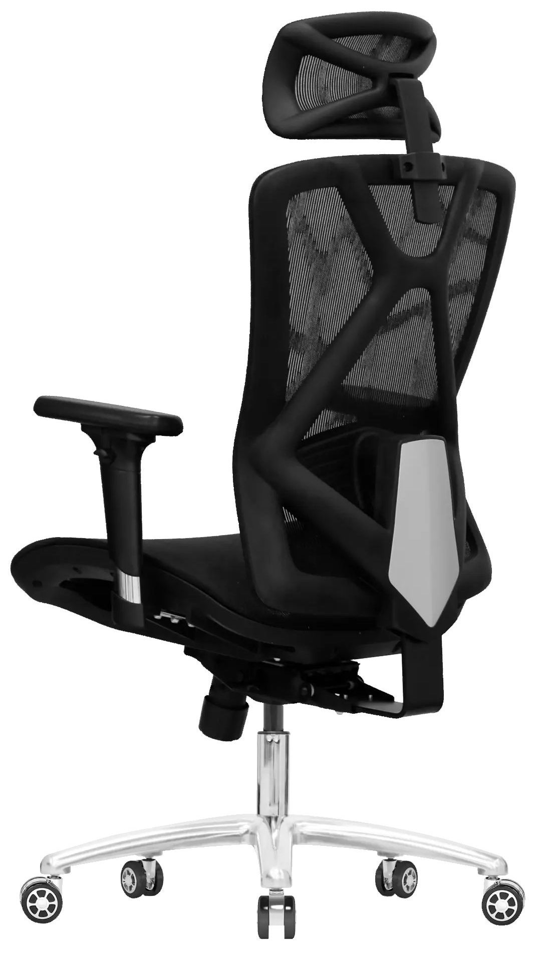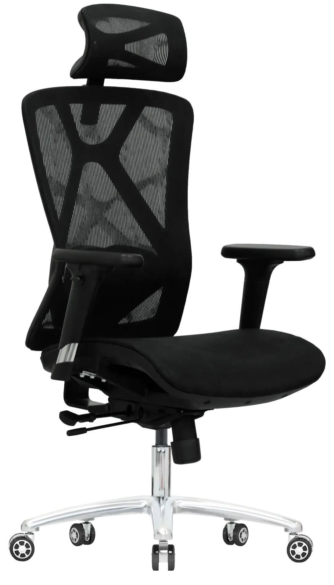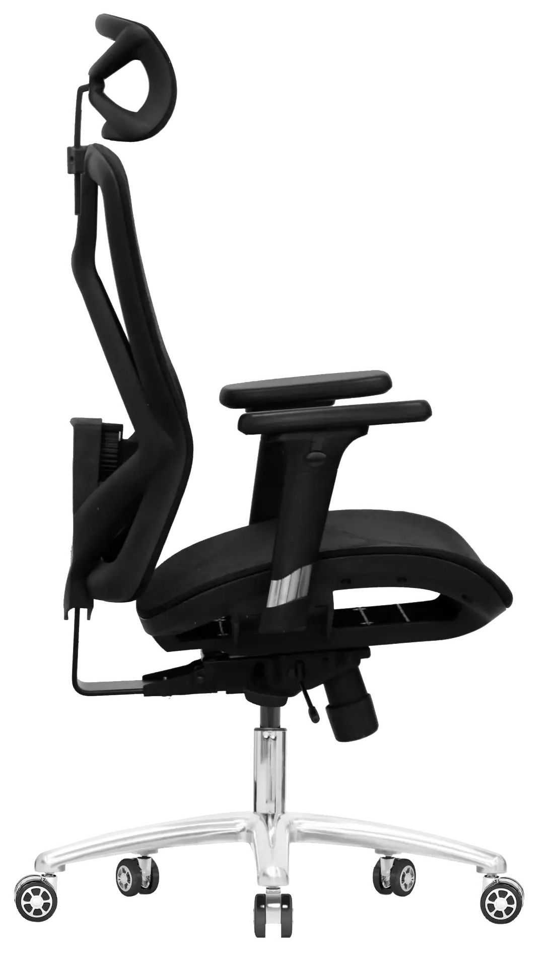Черное компьютерное кресло Evolution EXO F1 Mesh с алюминиевой крестовиной выдерживает нагрузку в 150 кг. Для удобства перемещения мебели по комнате установлены не царапающие ламинат и паркетный пол нейлоновые ролики. Есть рычаги для настройки удобной высоты и глубины сиденья, положения поясничной области, высоты и наклона спинки.