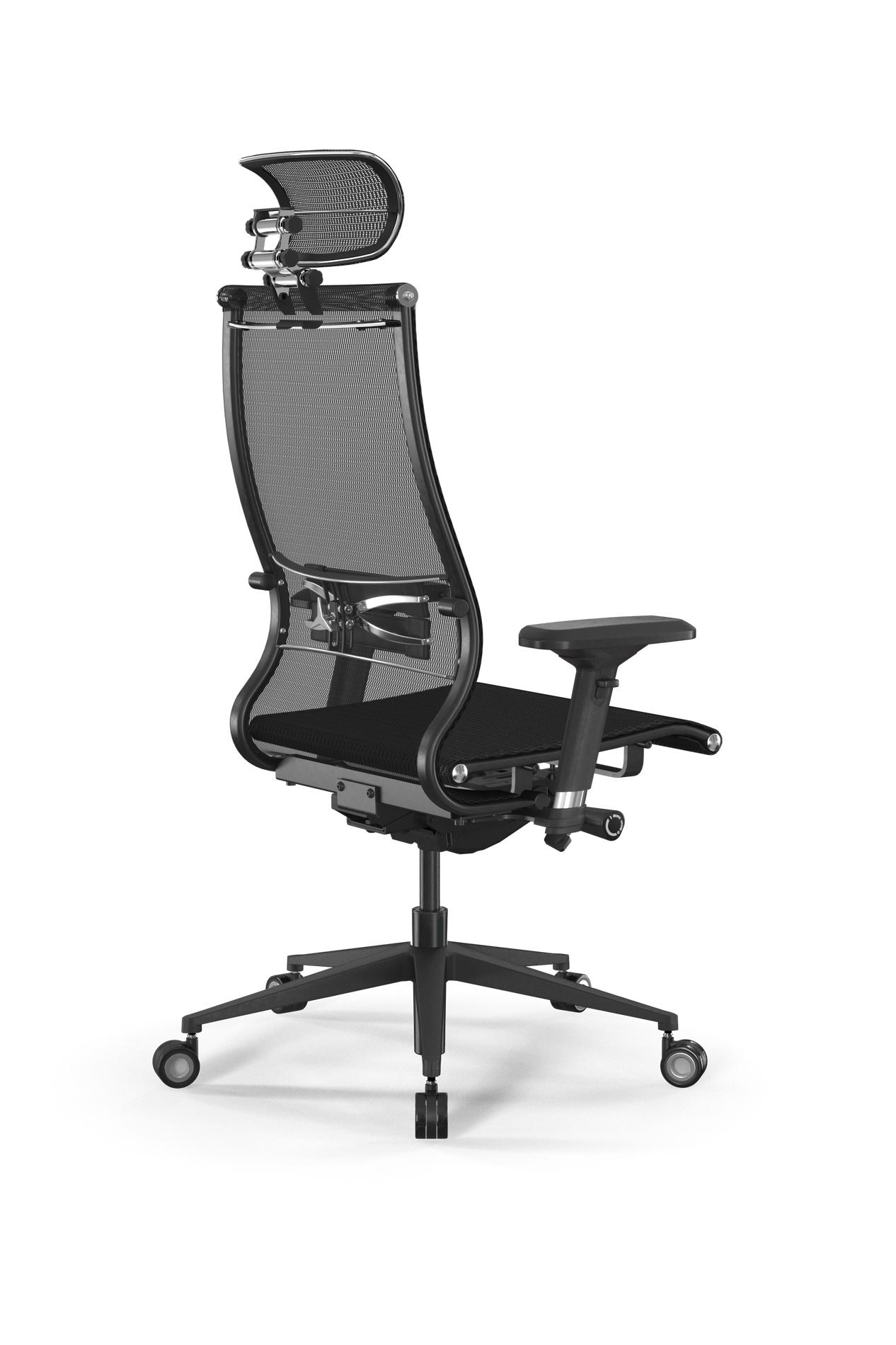 Кресло Метта Samurai Black Edition New на колесиках имеет съемный 3D-подголовник и пластиковые 4D-подлокотники, которые можно двигать по горизонтали, вертикали и диагонали, а также фиксировать под различными углами для поиска удобного положения. Они создают опору для локтей, снижают нагрузку на руки и не позволяют им уставать. Обивка кресла сделана из сетки, которая не протирается, не меняет форму и легко поддается очистке.