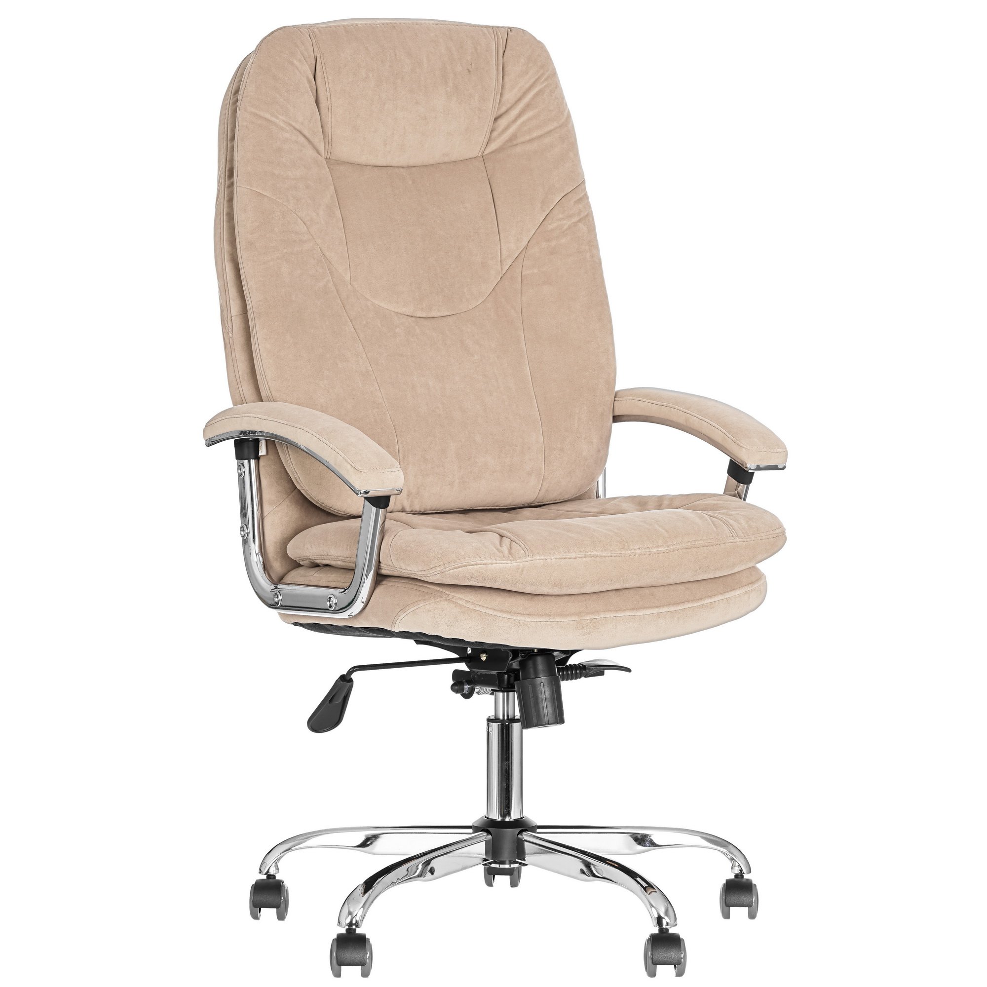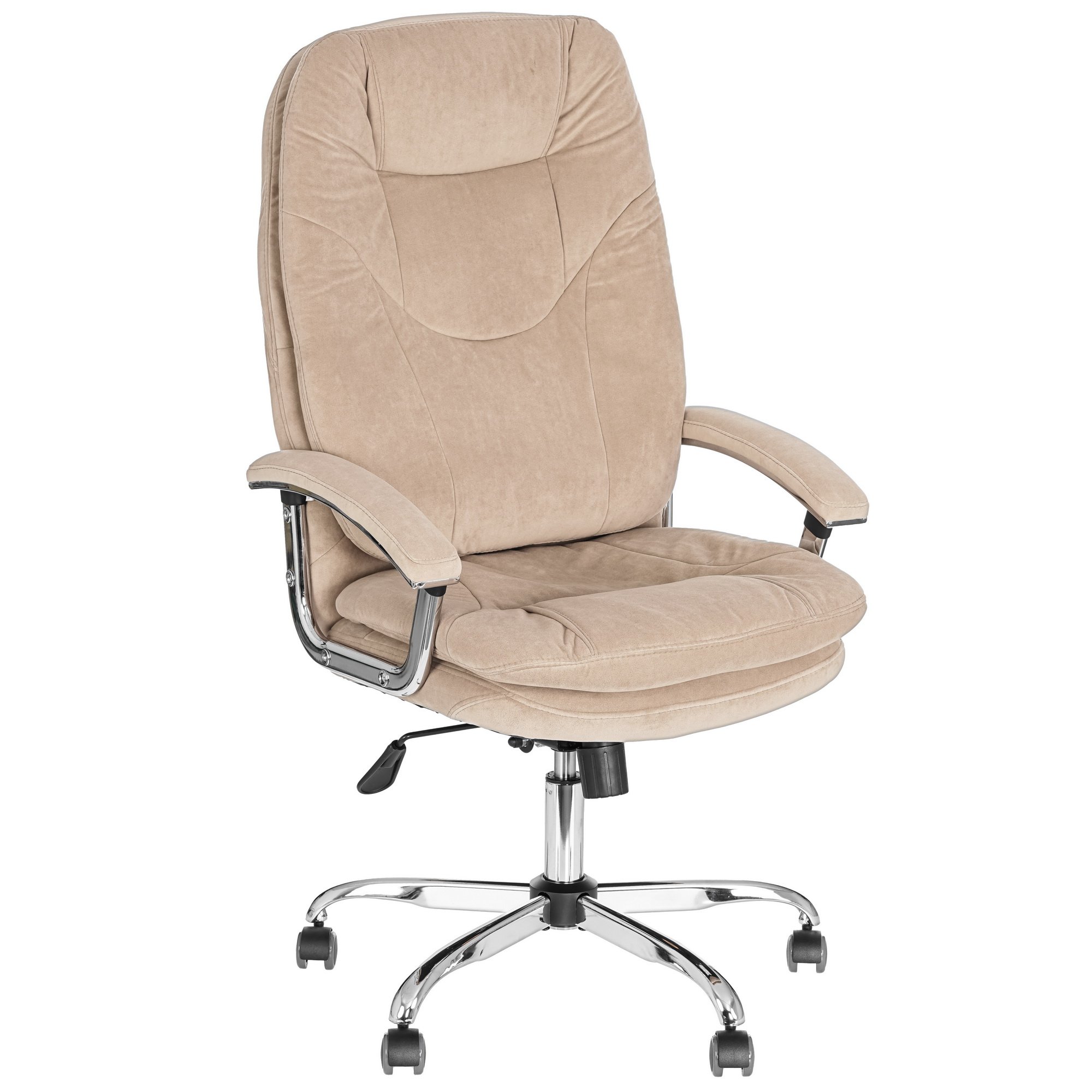Кресло офисное TetChair SOFTY Lux с приятной бежевой обивкой из ткани радует хорошей устойчивостью к износу и простотой в уходе. Дышащий материал не позволяет телу потеть, что повышает комфорт при долгой работе за компьютером. Упругая обивка не теряет форму даже через несколько месяцев активной эксплуатации мебели.